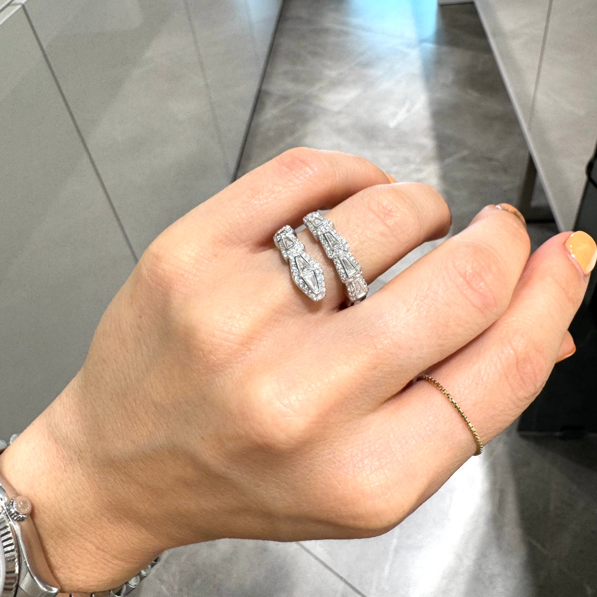 Anello in argento 925% a forma di serpente con zirconi incastonati di vari tagli , regolabile.