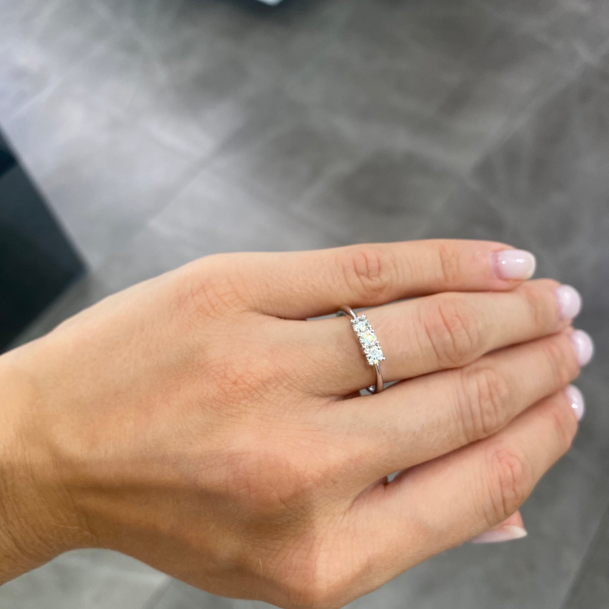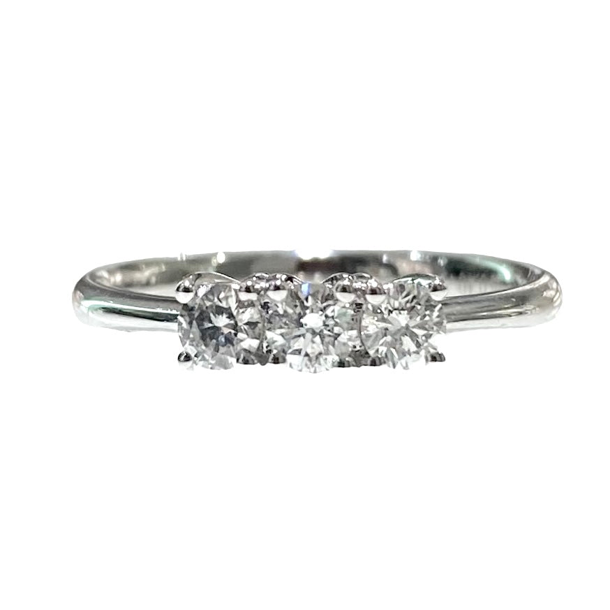 Anello in oro bianco 18 KT/750% con 3 diamanti taglio brillante incastonati con quattro griff l'uno.