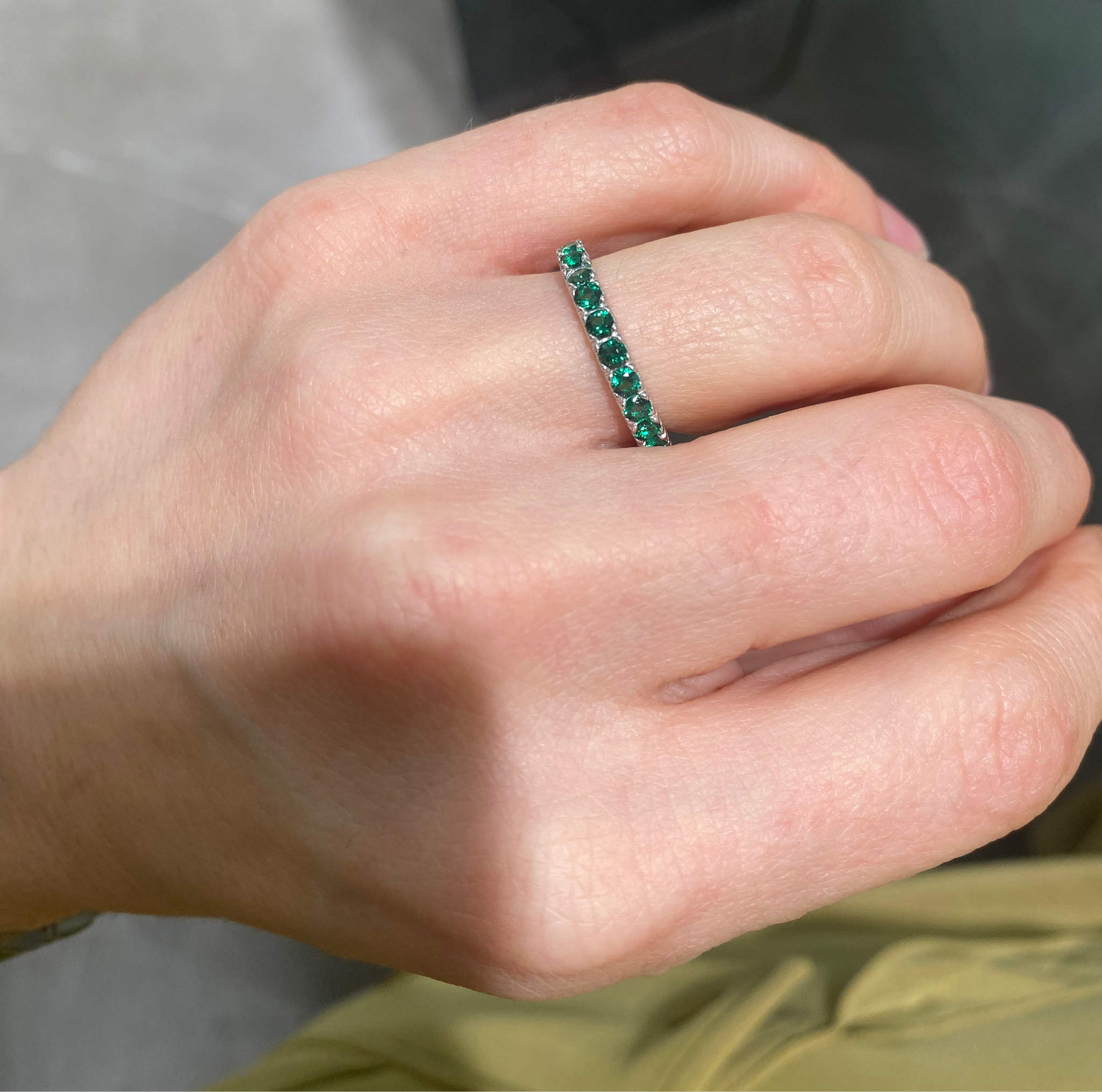 Anello in oro bianco 18KT/750% con zirconi incastonati su tutta la circonferenza verdi.