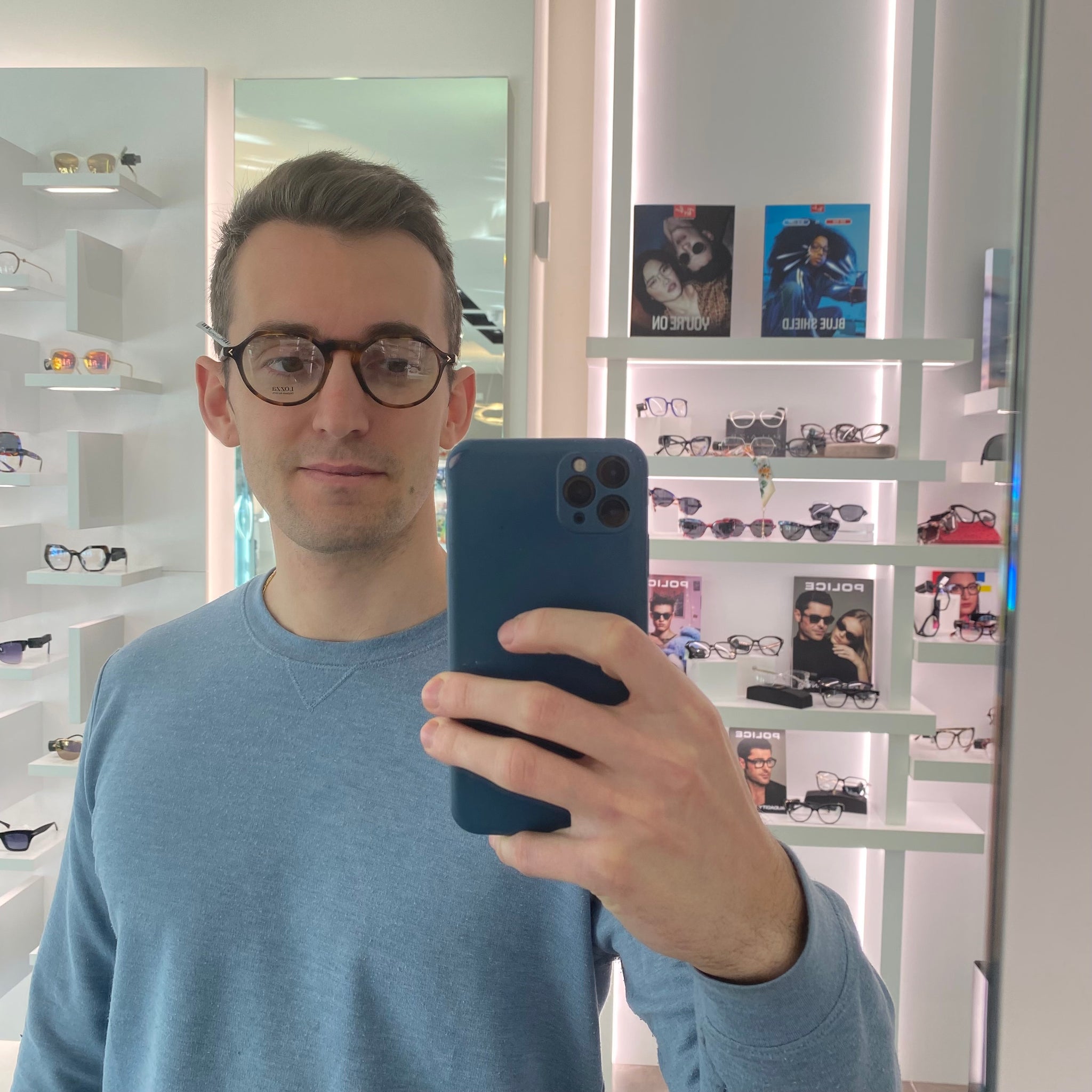 Occhiale da vista in acetato di celluloide marrone maculato chiaro.