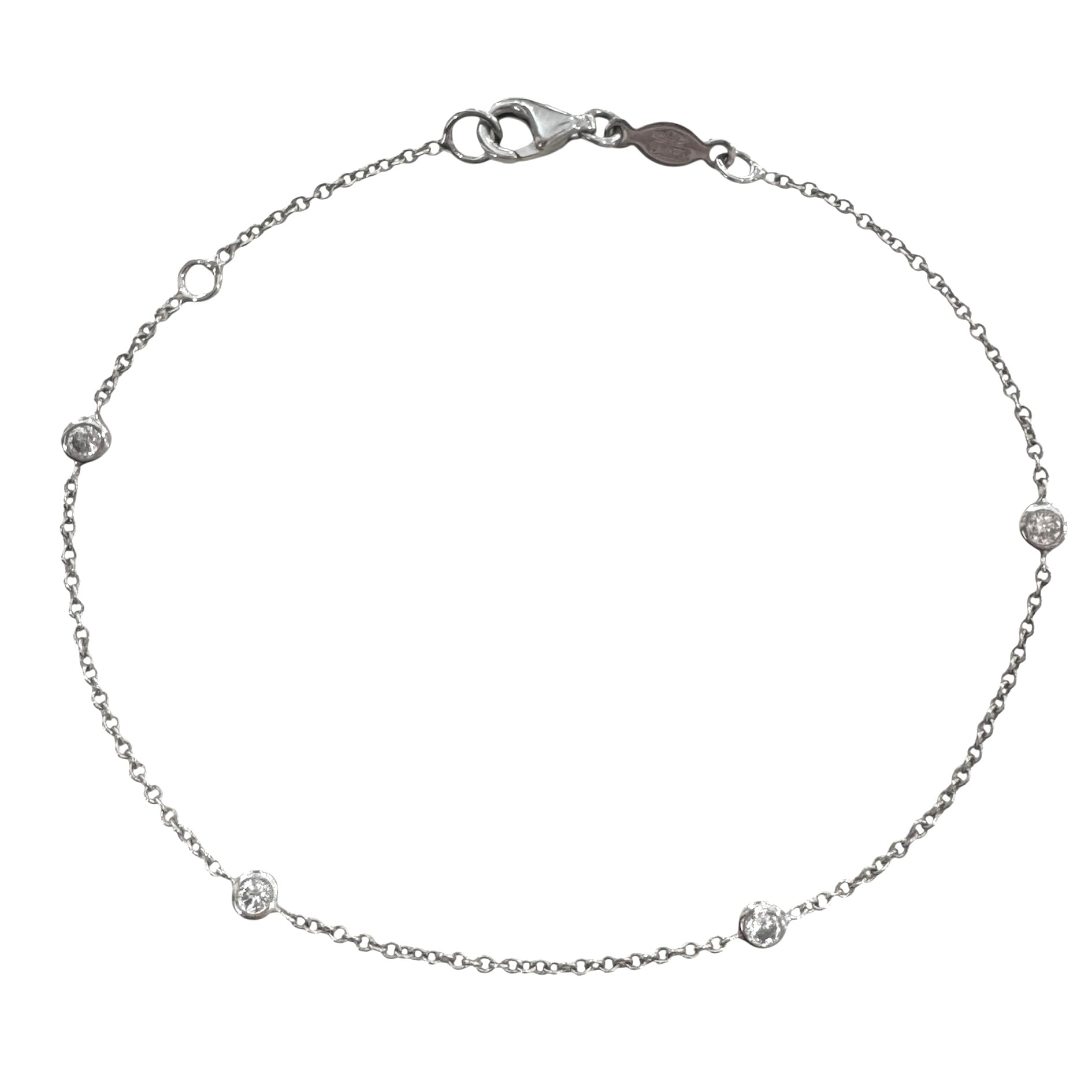 Bracciale in oro bianco 18KT/750% con zirconi incastonati sulla lunghezza chiusura con moschettone.