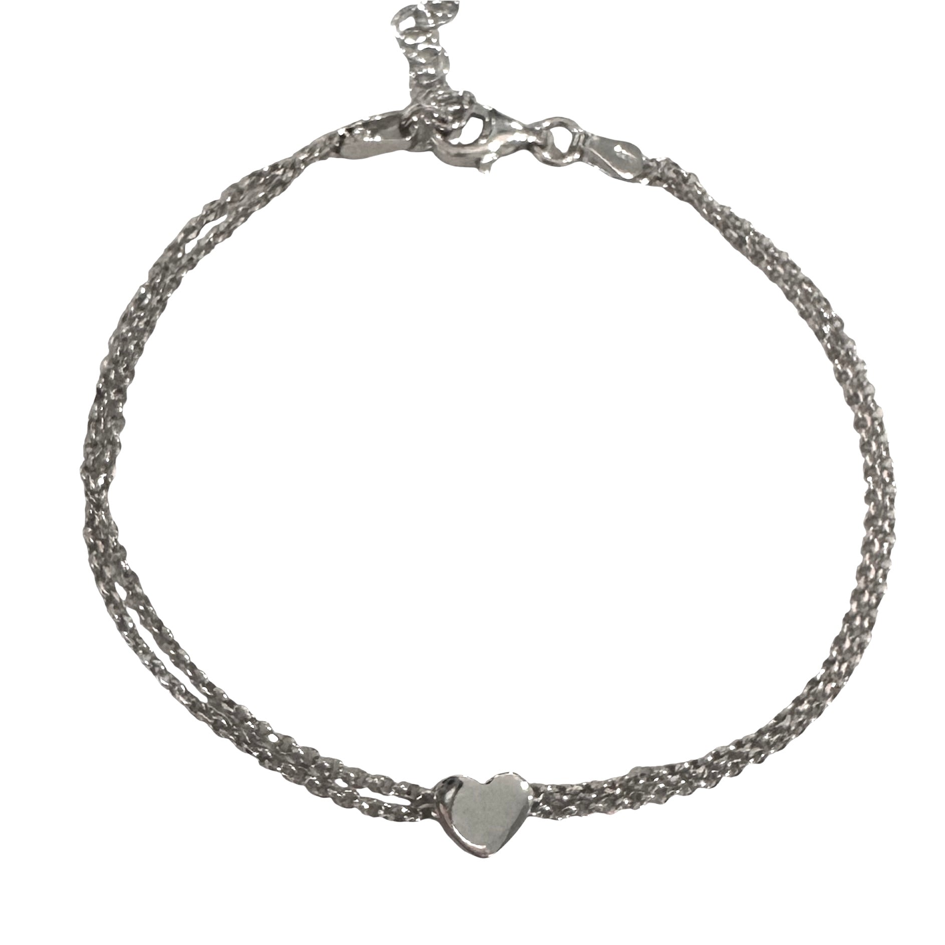 Bracciale in argento 925% con doppia catenella ad anellini con cuore centrale liscio con possibilità di incisione.