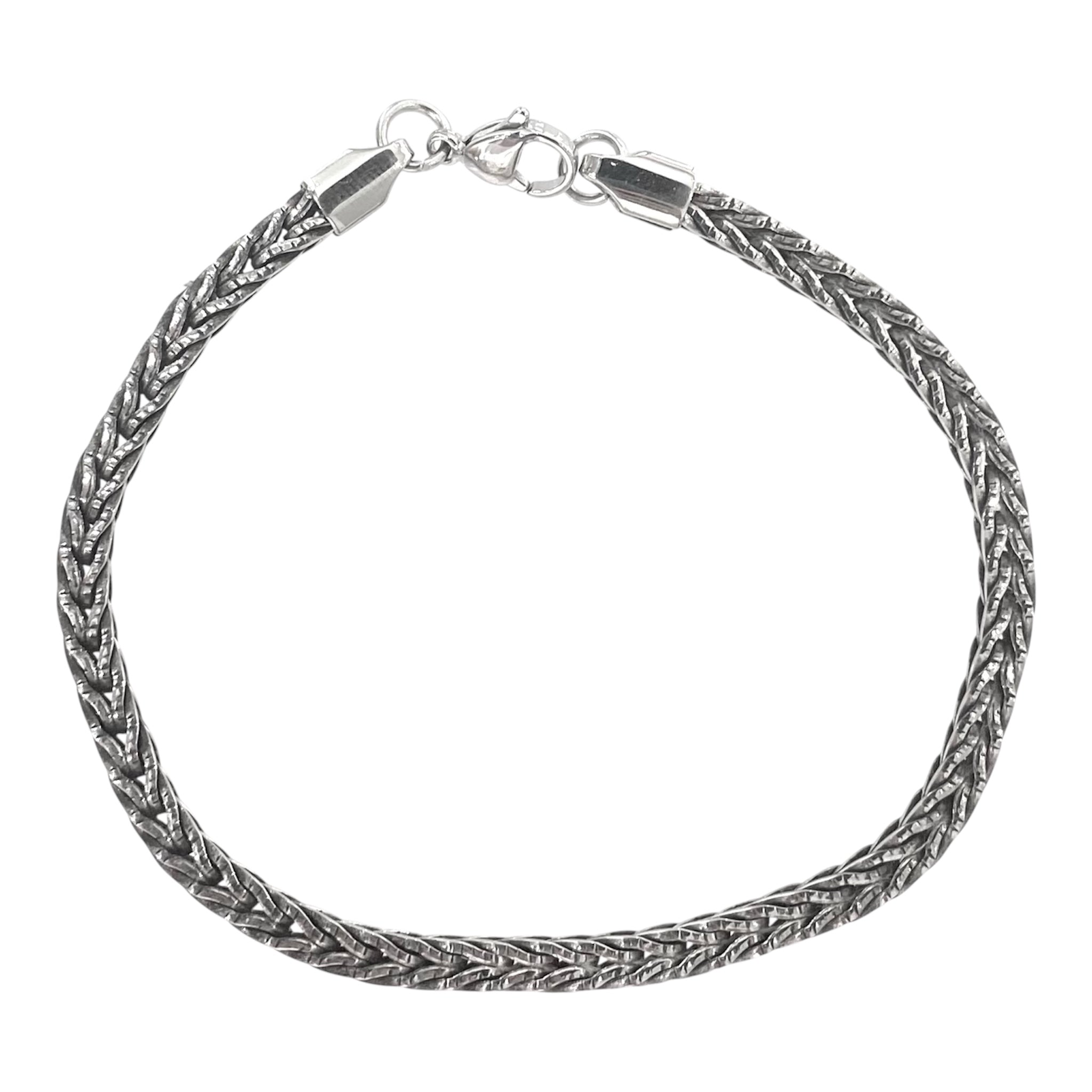 Bracciale da uomo in acciaio 316 L con maglia cubica e incatenata come una treccia.