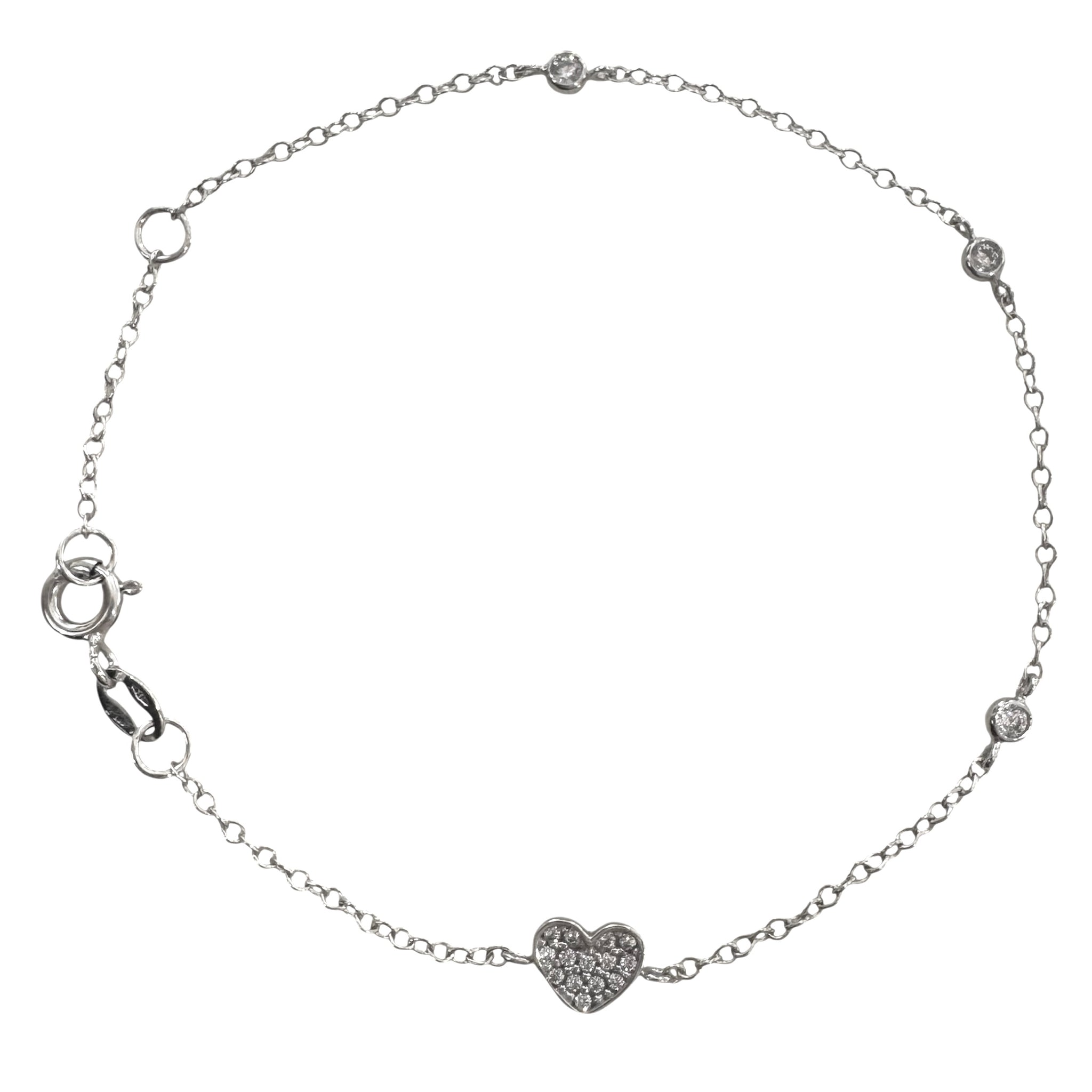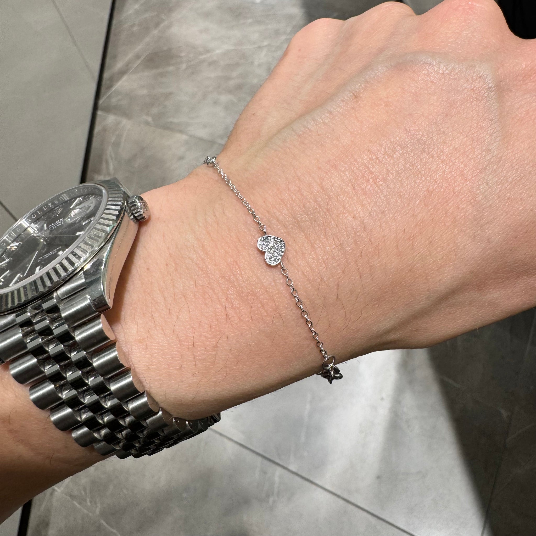 Bracciale in oro bianco 18KT/750% con cuore e zirconi incastonati sulla lunghezza chiusura con moschettone.