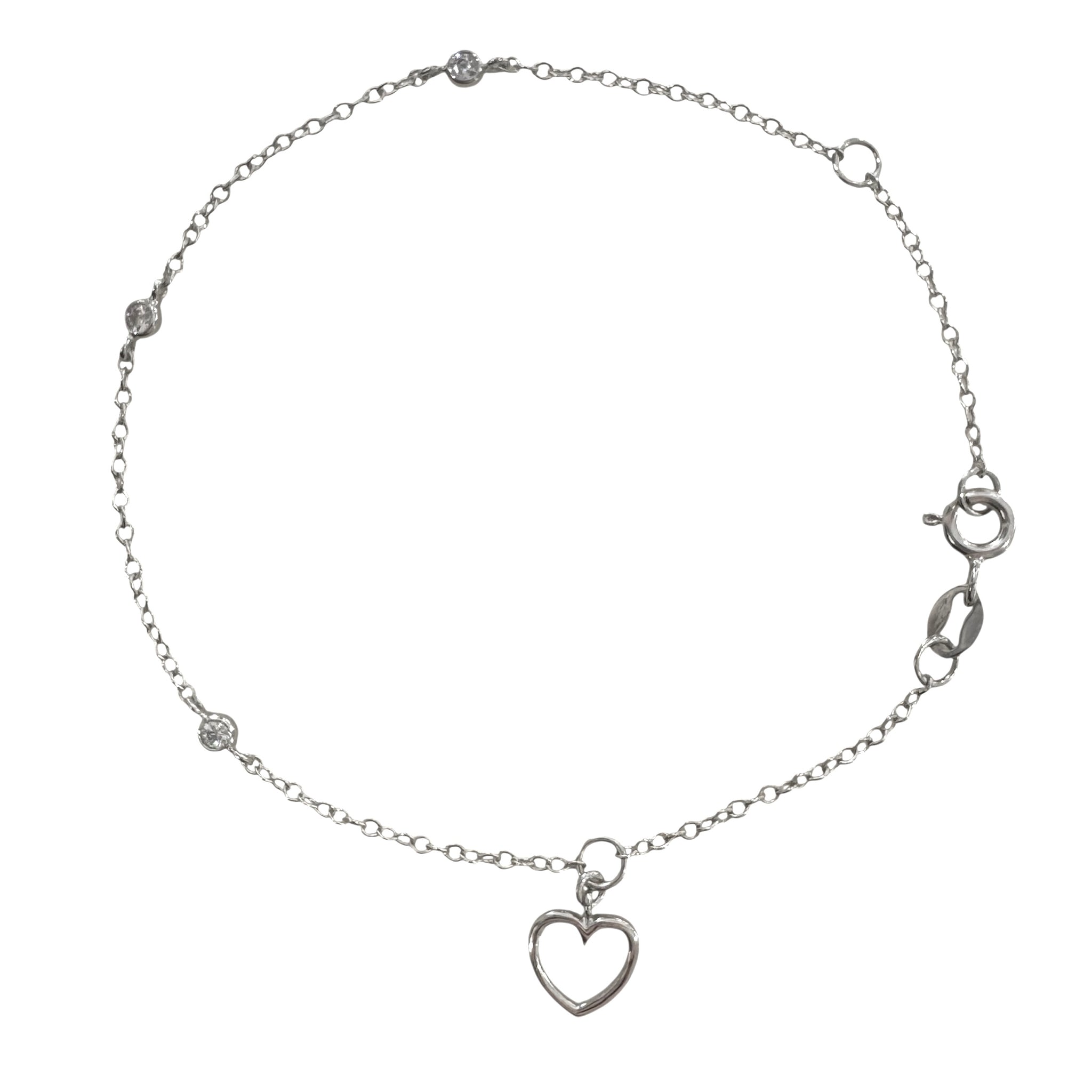 Bracciale in oro bianco 18KT/750% con cuore di contorno pendente e zirconi incastonati sulla lunghezza chiusura con moschettone.