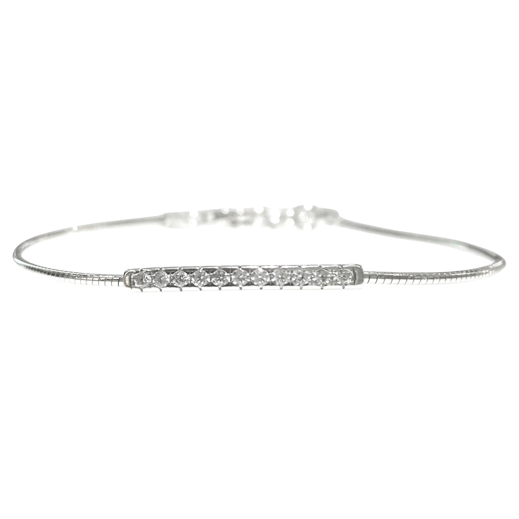 Bracciale in argento 925% con piastra centrale con zirconi incastonati con magli a 'coda di topo' morbida.