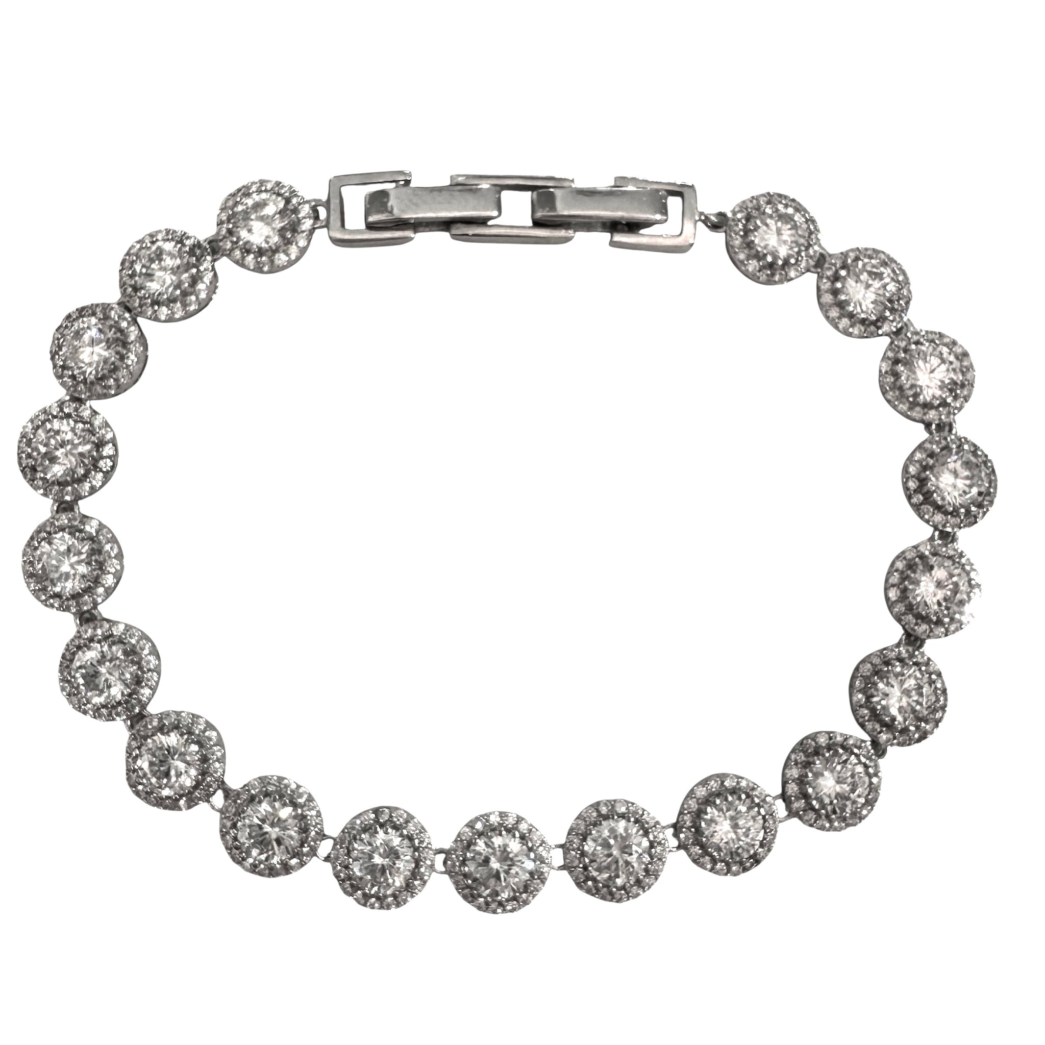 Bracciale in argento 925% con zirconi incastonati su tutti gli charm distribuiti su tutta la lunghezza della collana.