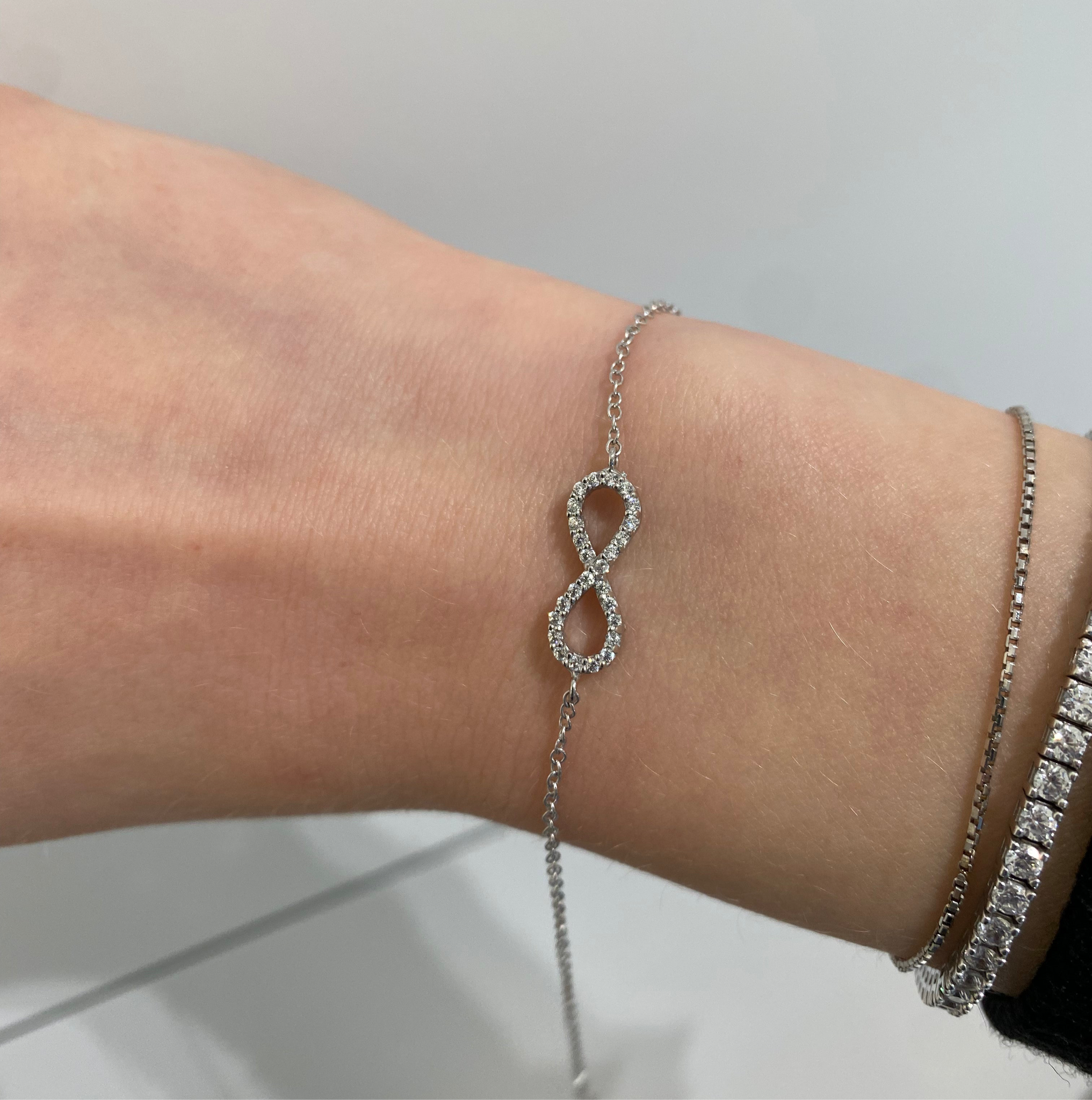 Bracciale in oro bianco 18KT/750% con zirconi incastonati sul gioiello centrale su entrambi i lati.