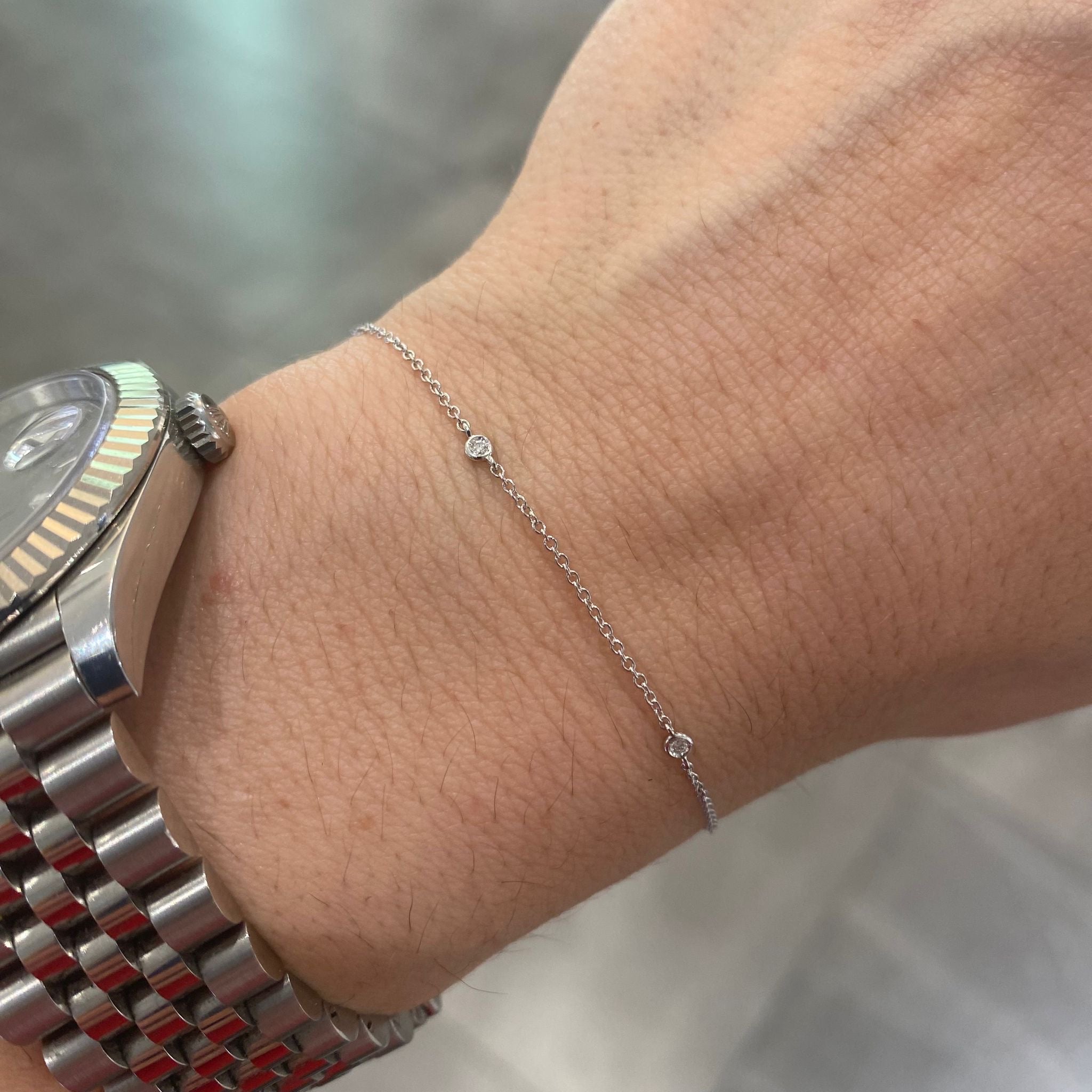 Bracciale in oro bianco 18KT/ 750% e diamanti incastonati sulla lunghezza.