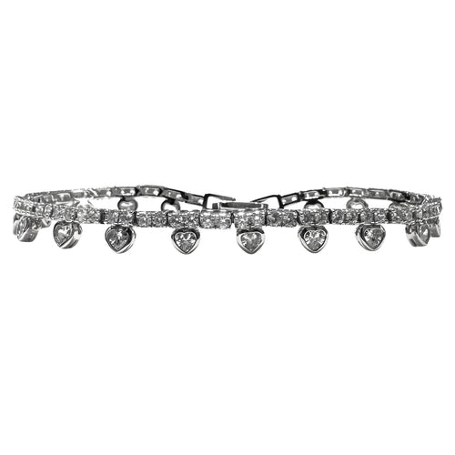 BRACCIALE DOPPIO, CUORI E PERLE PENDENTI