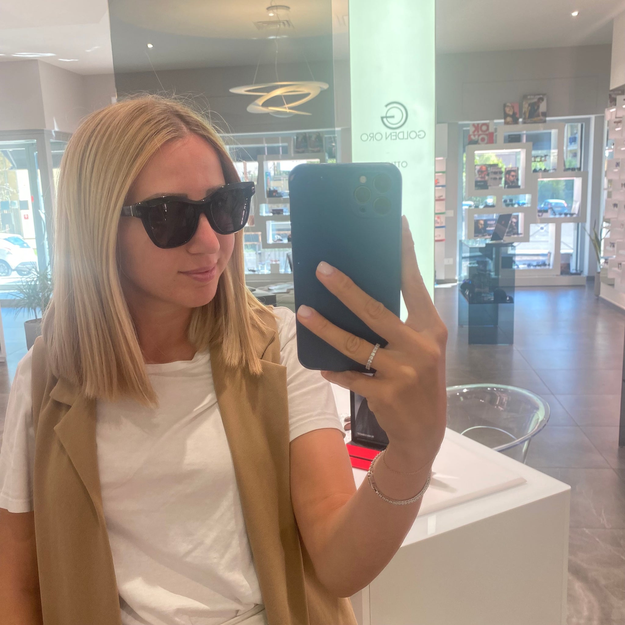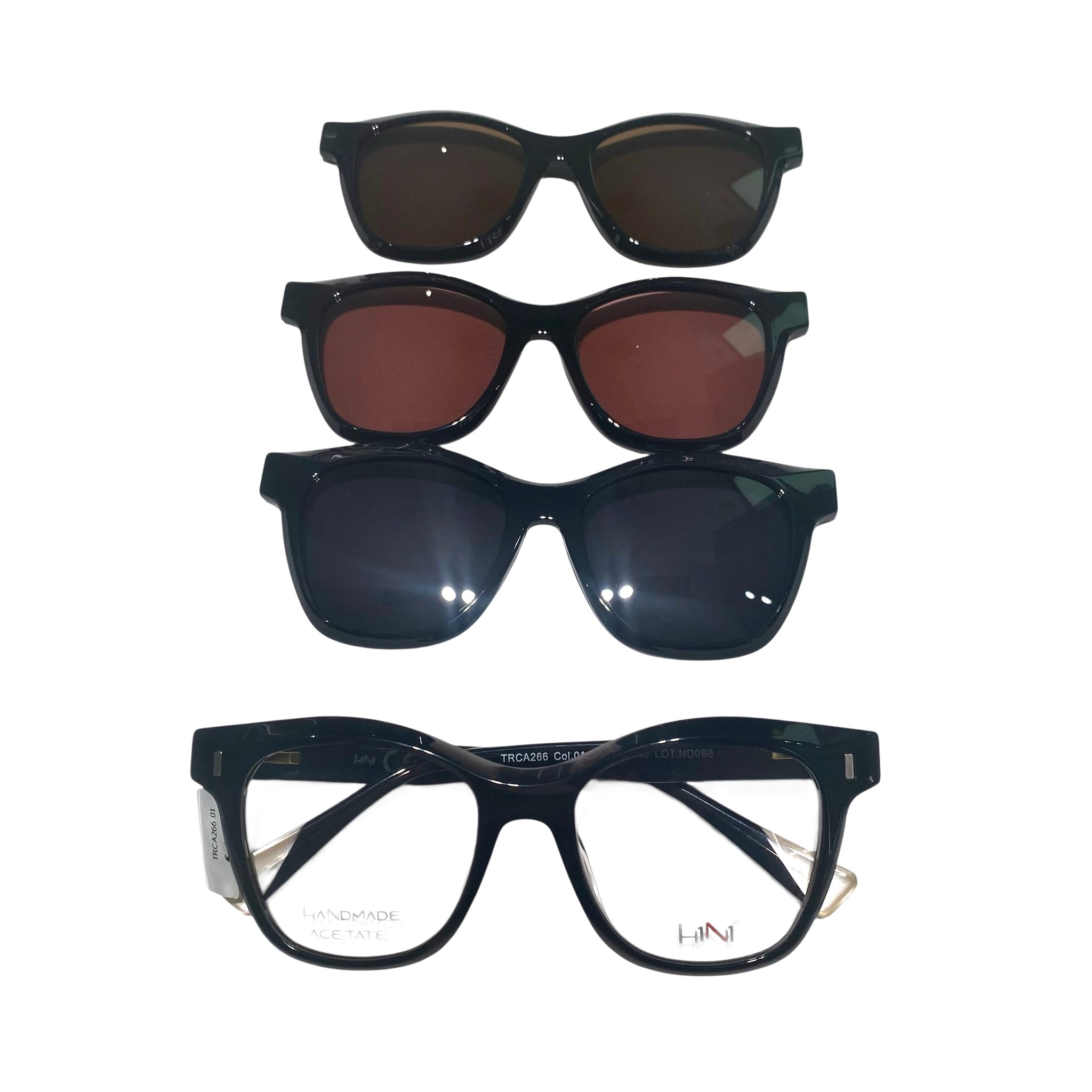 Occhiale da vista/sole H1N1 con clip-on in acetato di celluloide nero con finale dell'asta crema .
