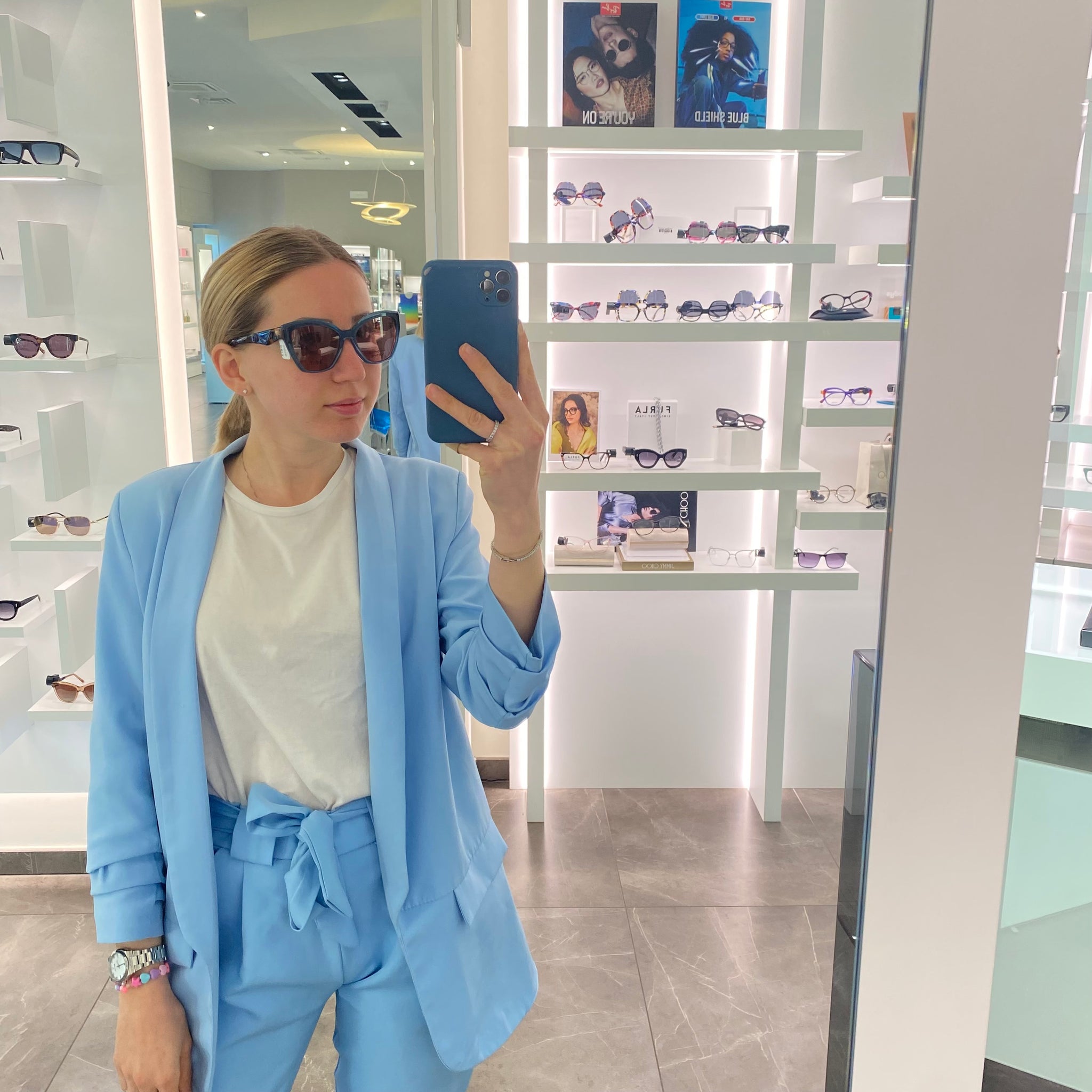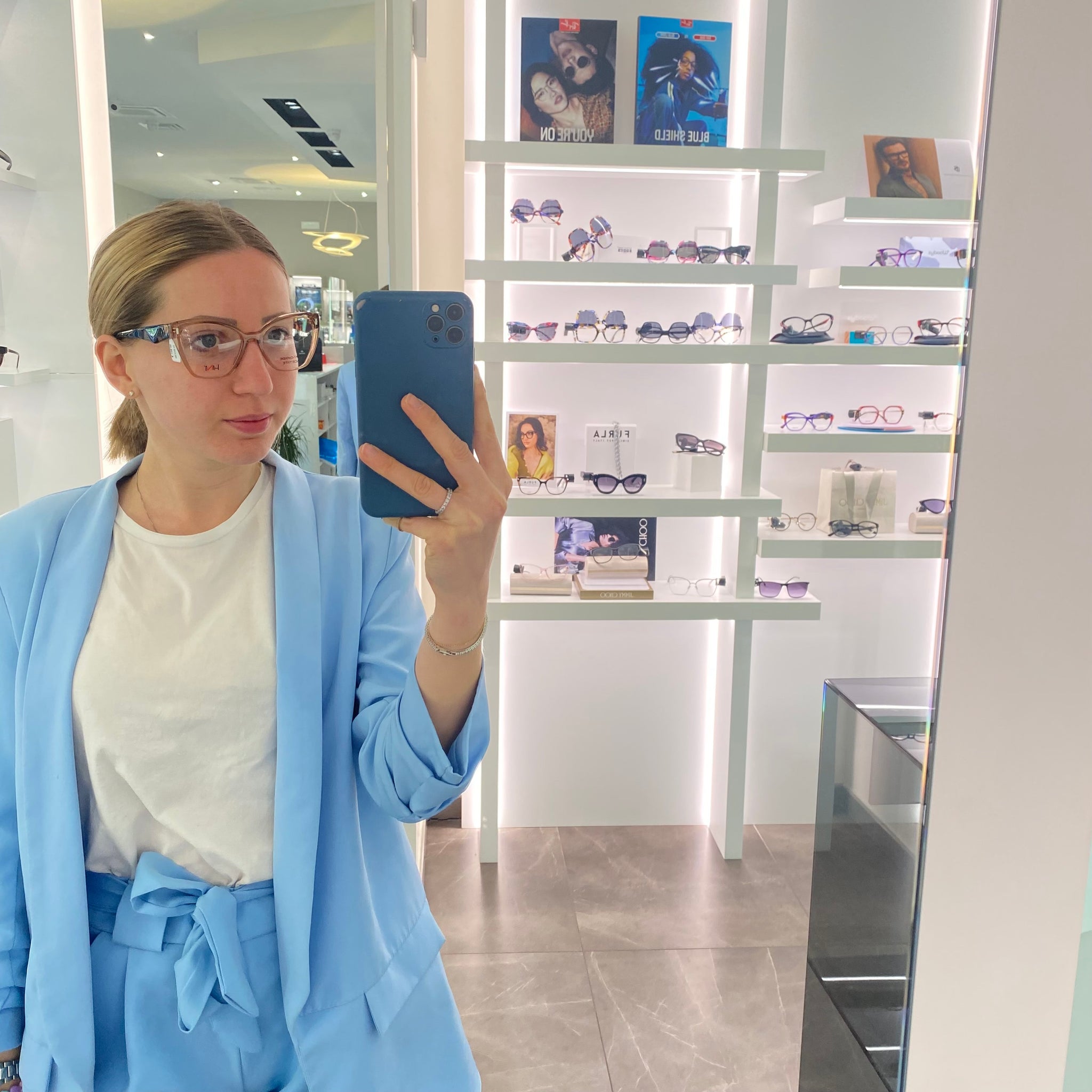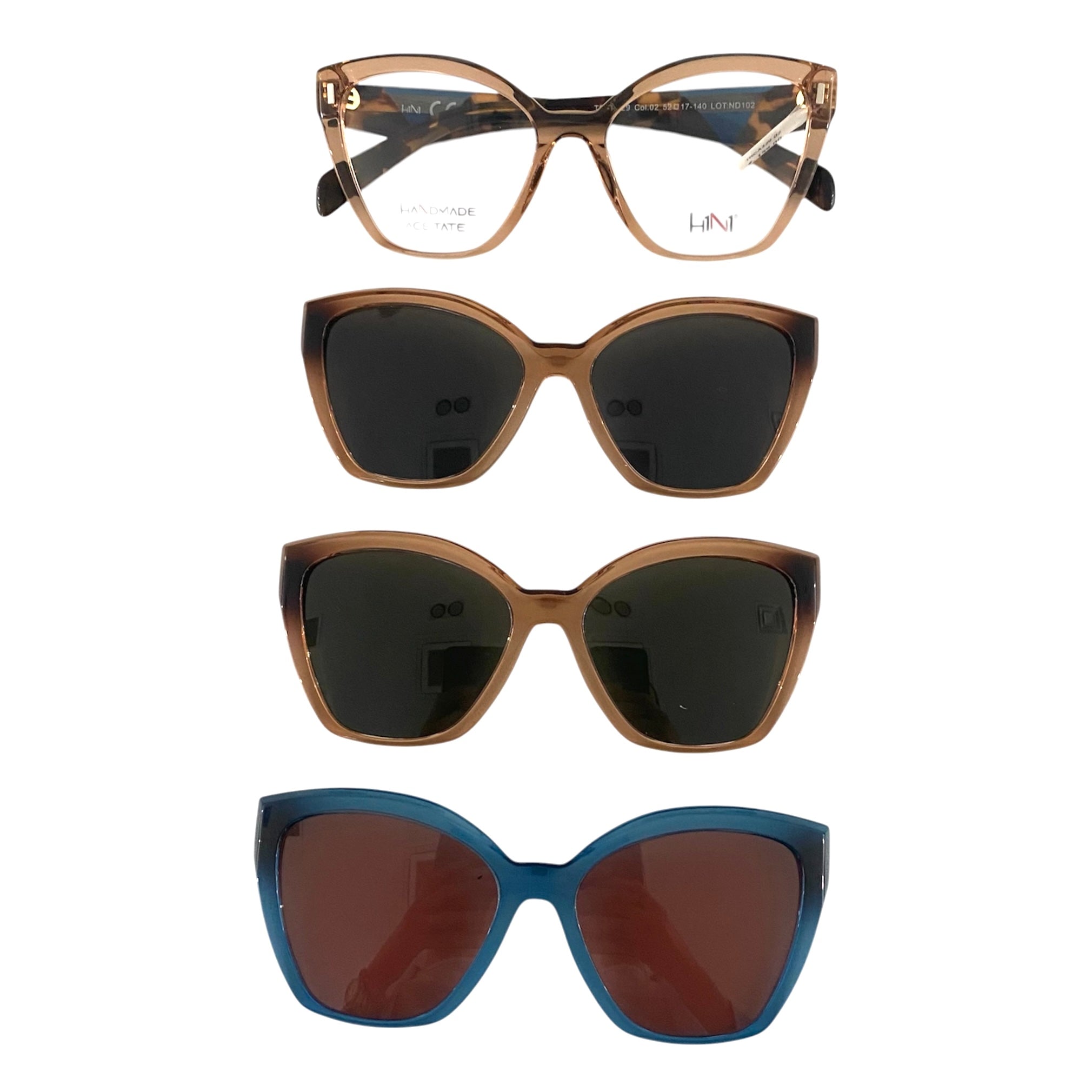 Occhiale da vista/sole rosa trasparente e aste maculate, con montatura a farfalla, sono comprese tre clip polarizzate.