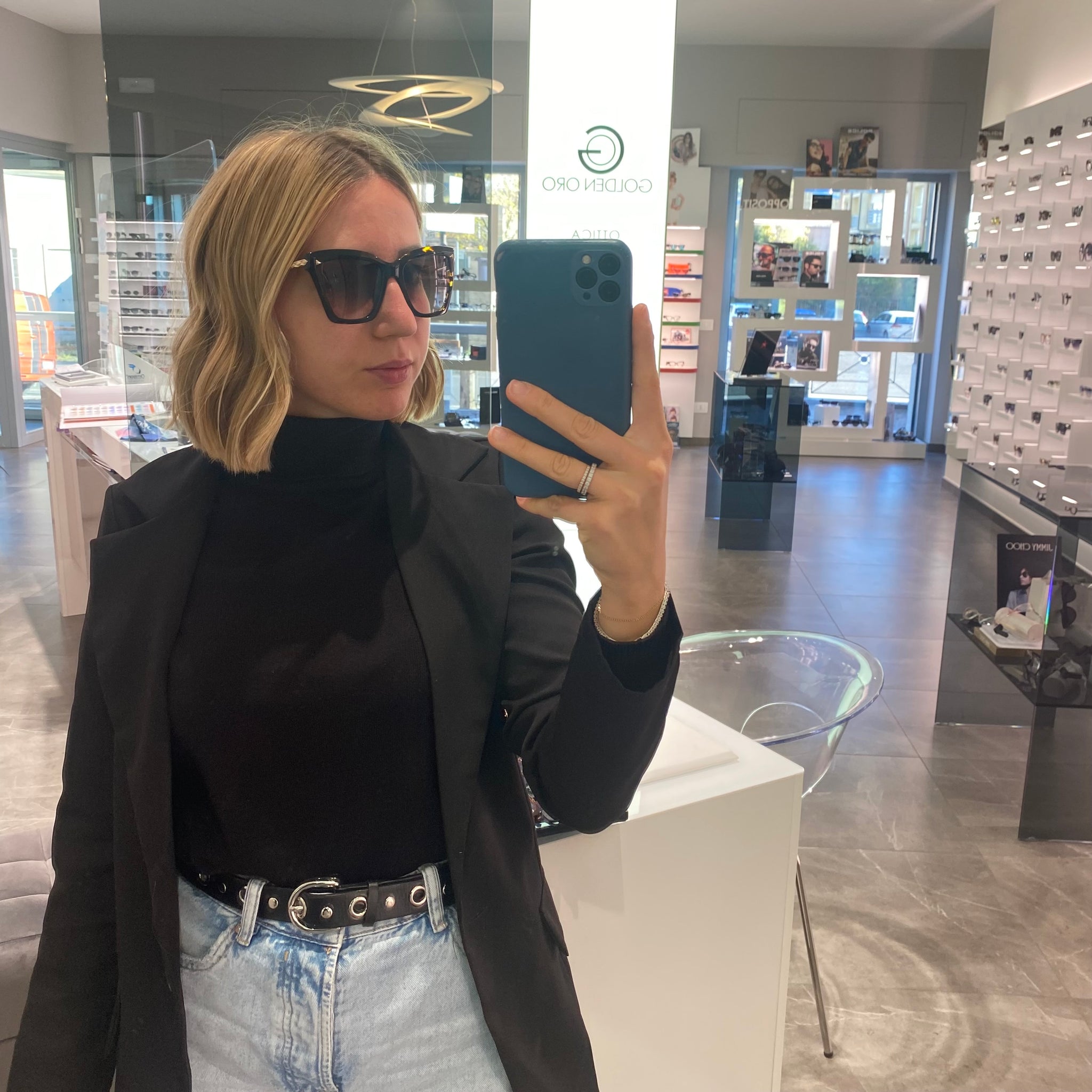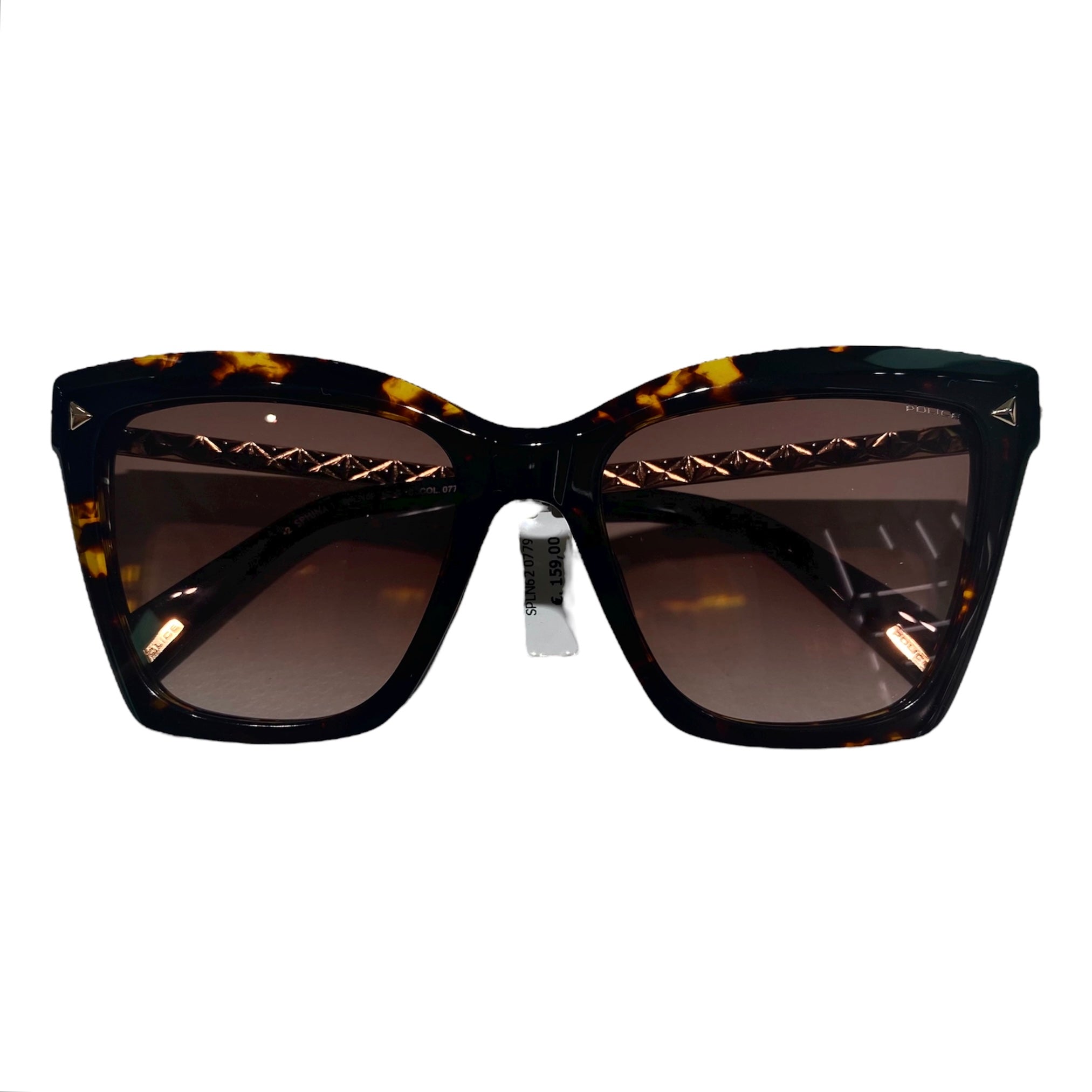 Occhiale da sole in acetato di celluloide a forma di farfalla maculato marrone con asta lavorata in metallo .