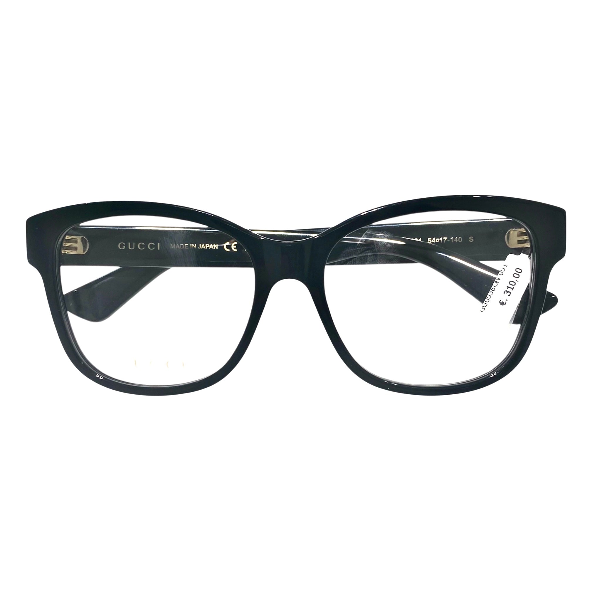 Occhiale da vista in acetato di celluloide nero con logo sull’asta dorato.