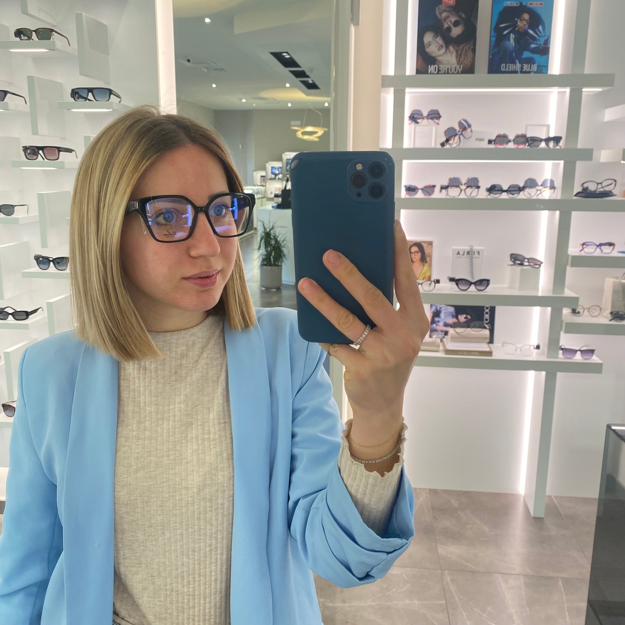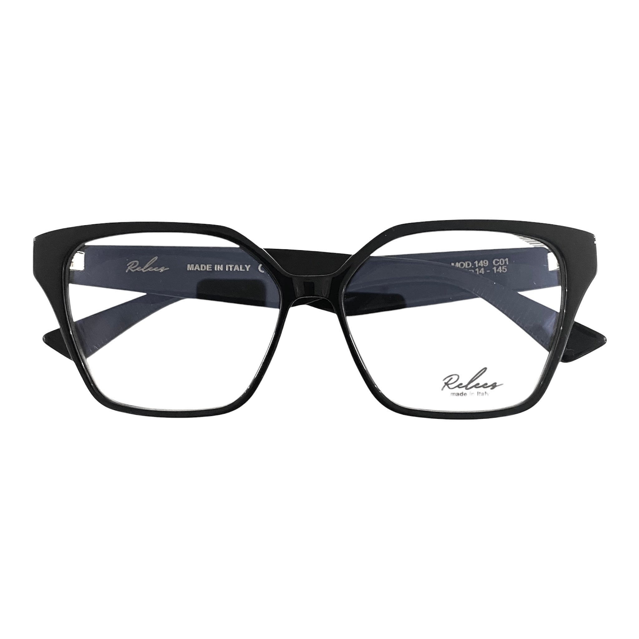 Occhiale da vista in celluloide nero lucido, squadrato.