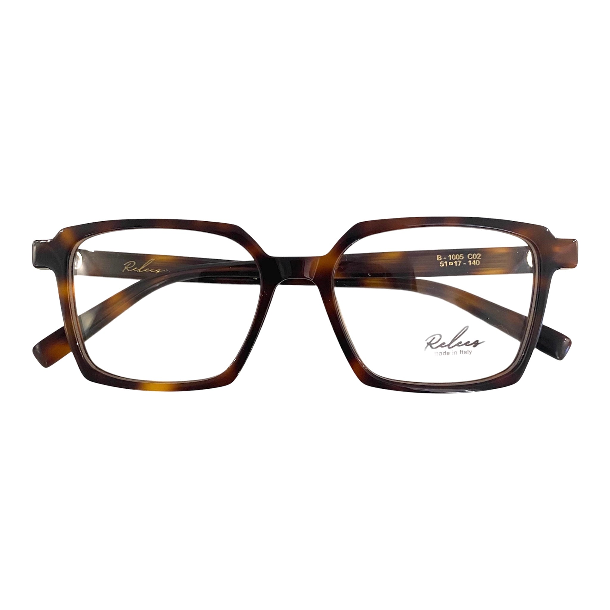 Occhiale da vista in celluloide havana, squadrato. Fatto in Italia.