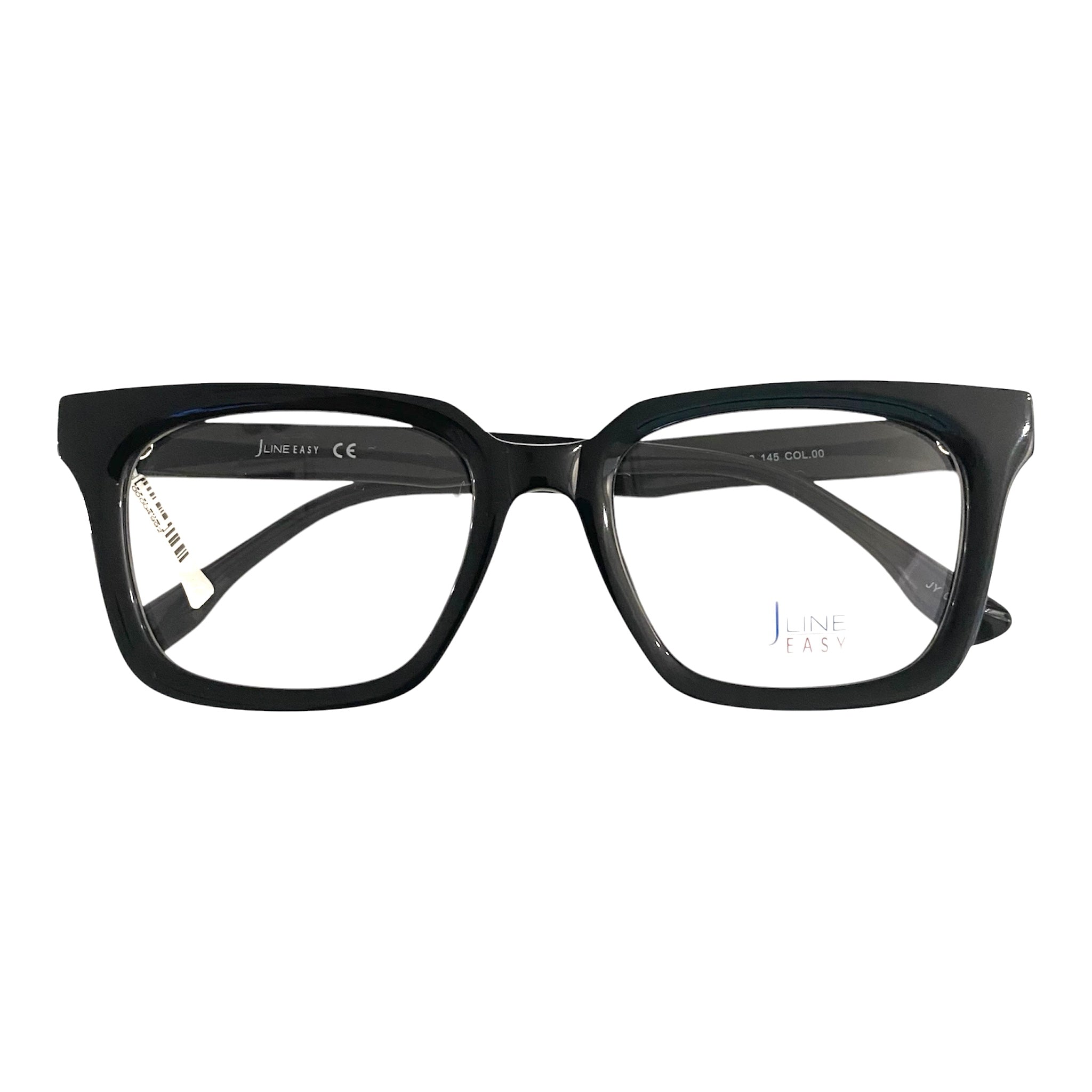 Occhiale da vista Jline in celluloide nero, quadrato e spesso.