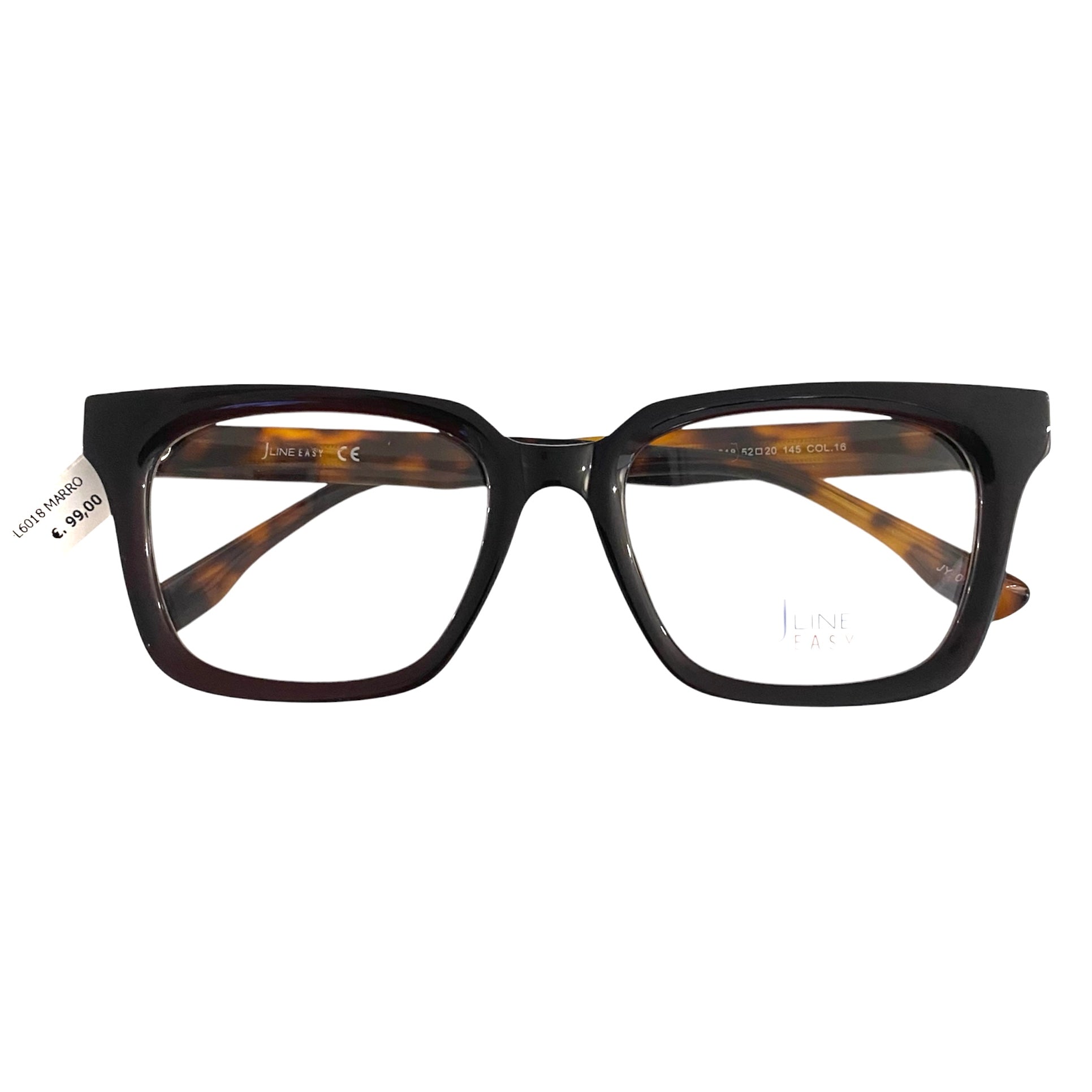 Occhiale da vista Jline in celluloide havana, quadrato e spesso.