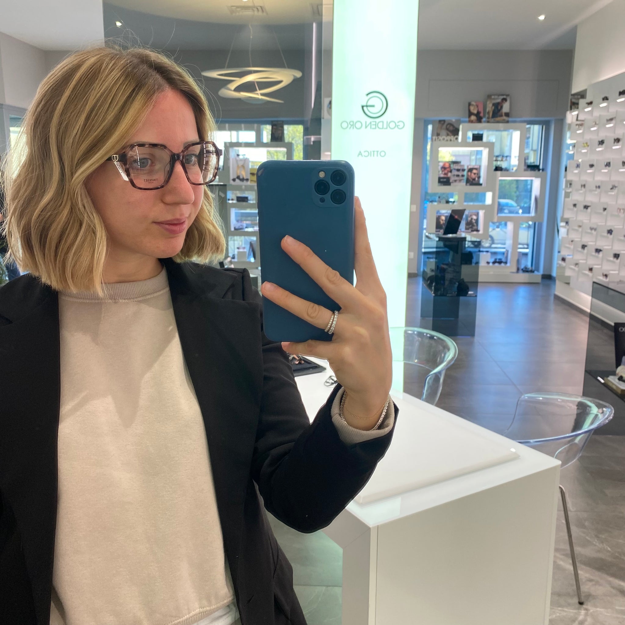 Occhiale da vista in acetato di celluloide maculato rosato con asta bordeaux.
