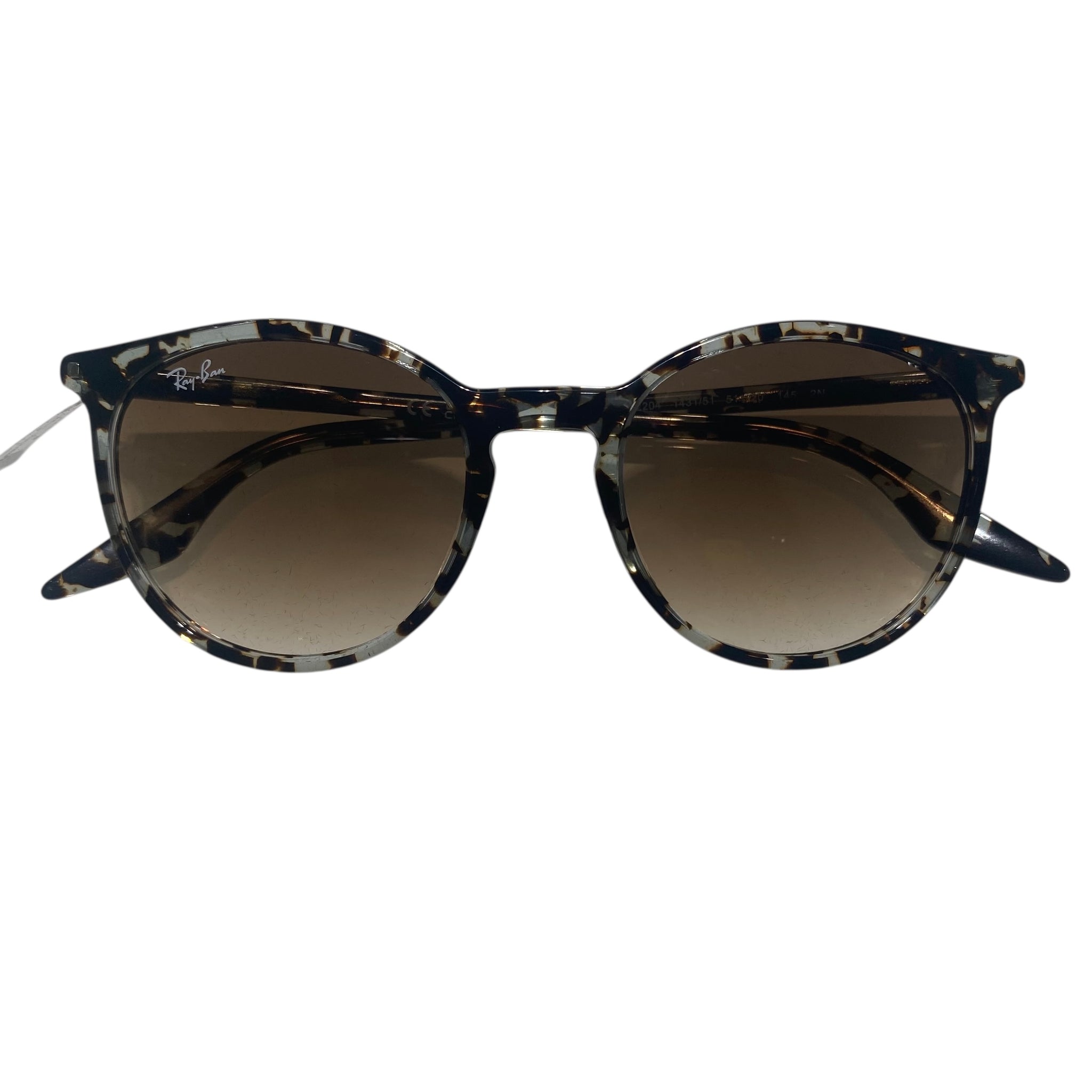 Occhiale da sole in acetato di celluloide giallo havana tartarugato con lente trasparente sfumato marrone.