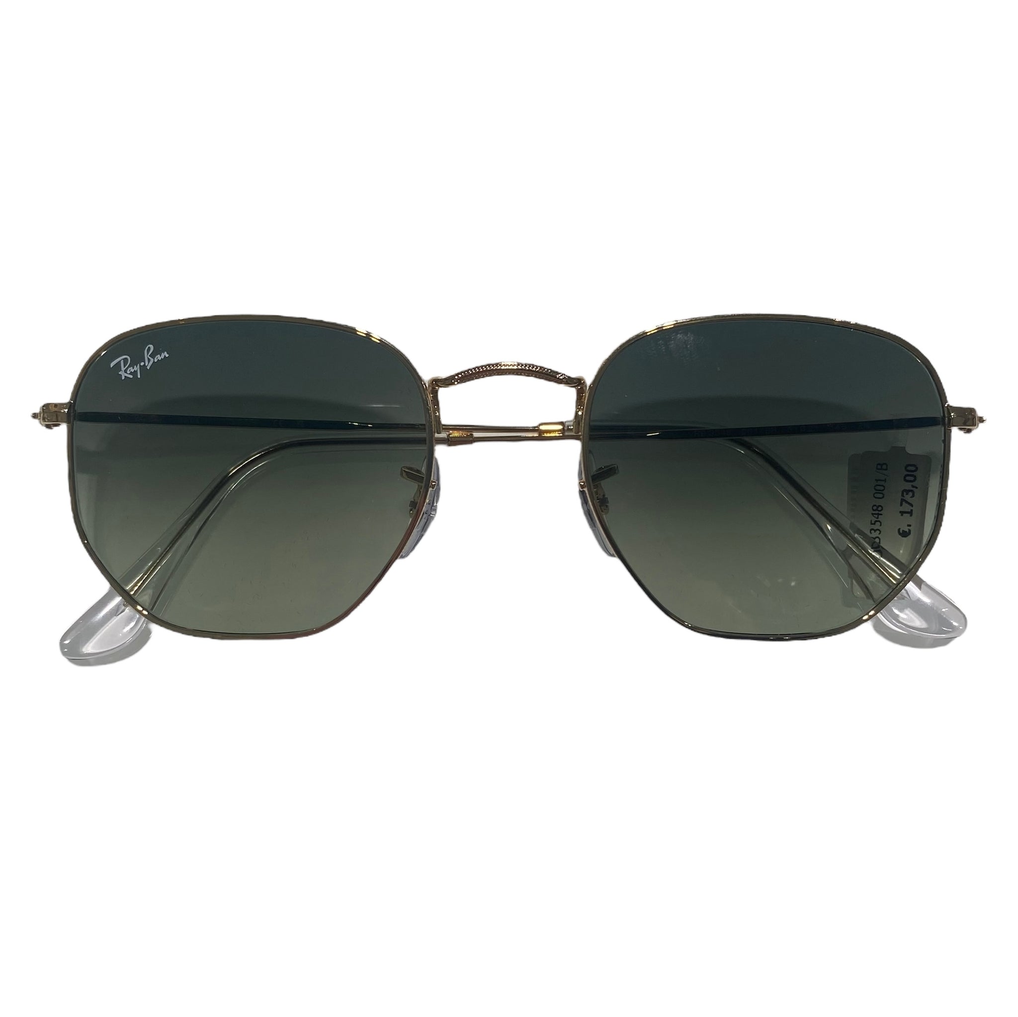 Occhiale da sole in metallo color oro con lente verde vintage.