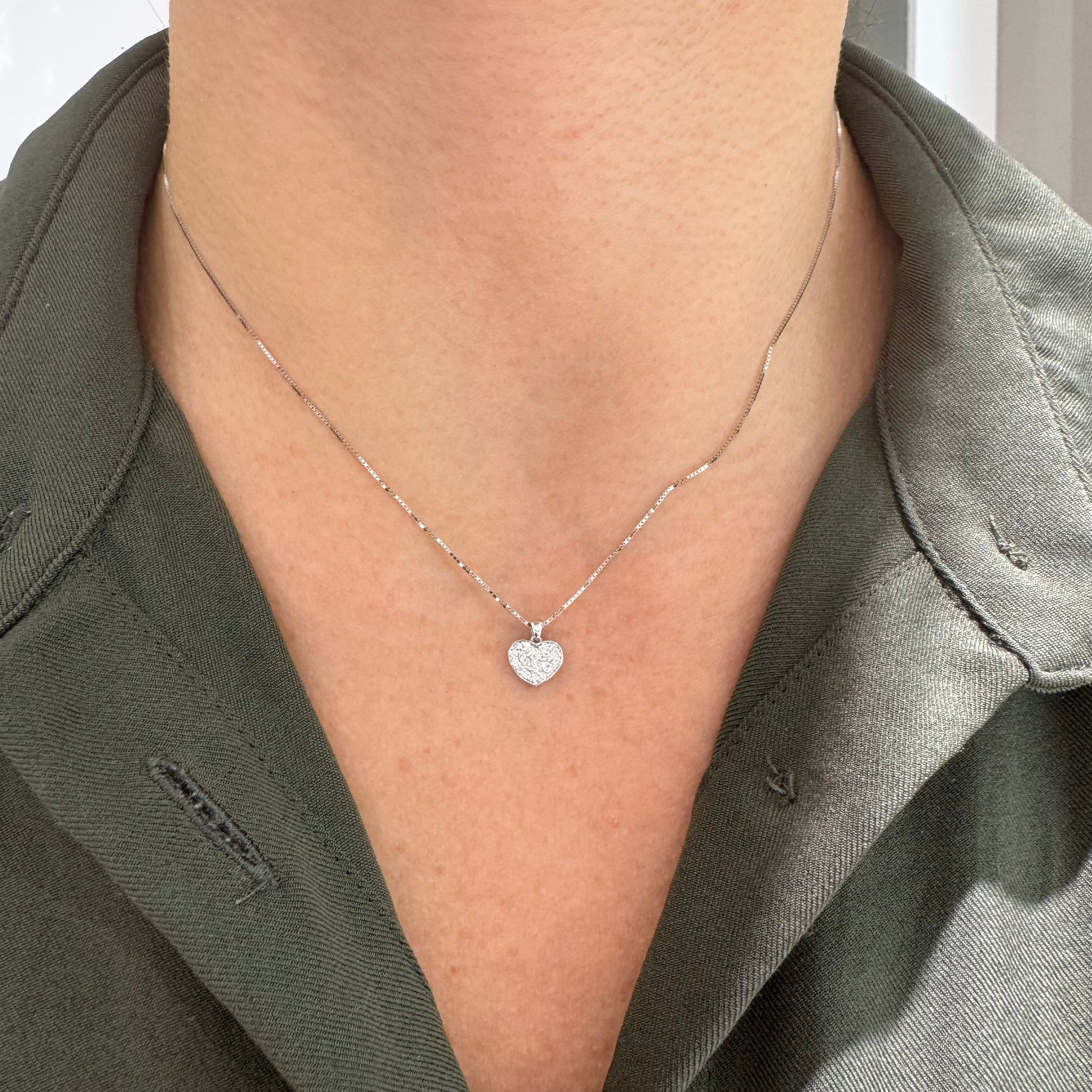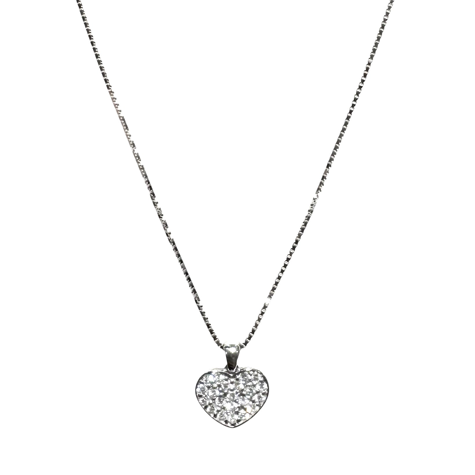 Collana in oro bianco 18KT/750% con diamanti incastonati sul cuore e chiusura a moschettone.