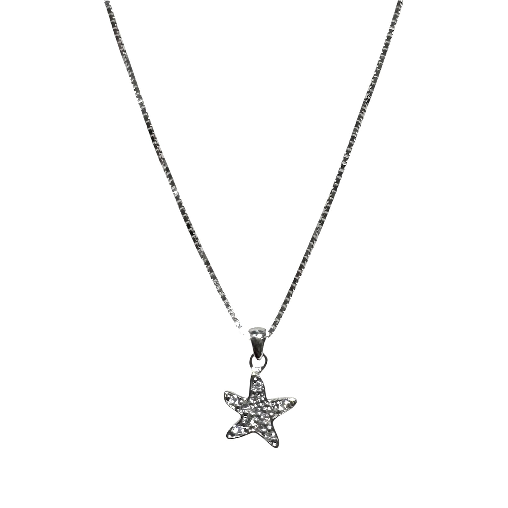 Collana in oro bianco 18KT/750% con diamanti incastonati sulla stella marina e chiusura a moschettone.