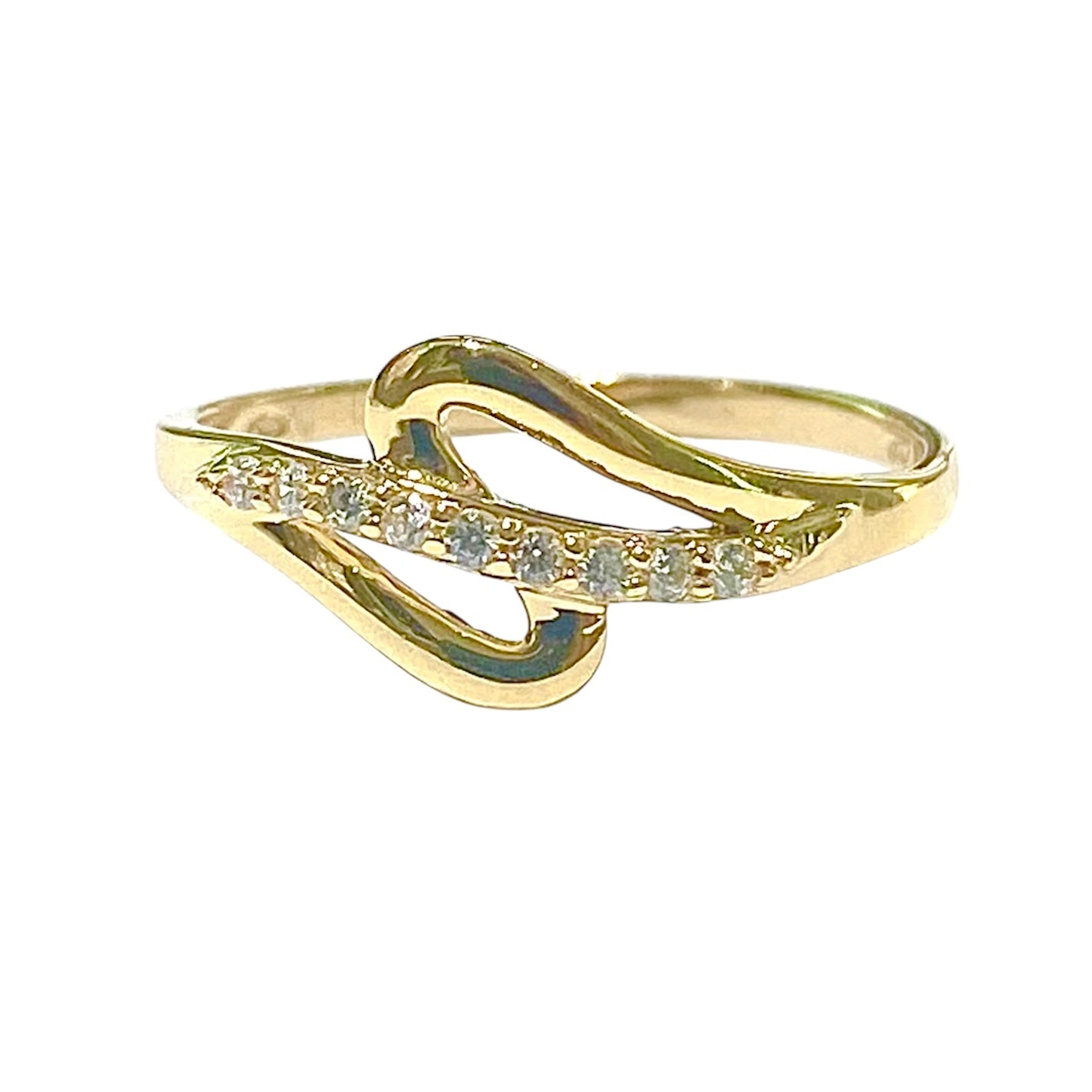 Anello in oro giallo 18KT/750% con zirconi incastonati nell'onda centrale e le due esterne lisce.