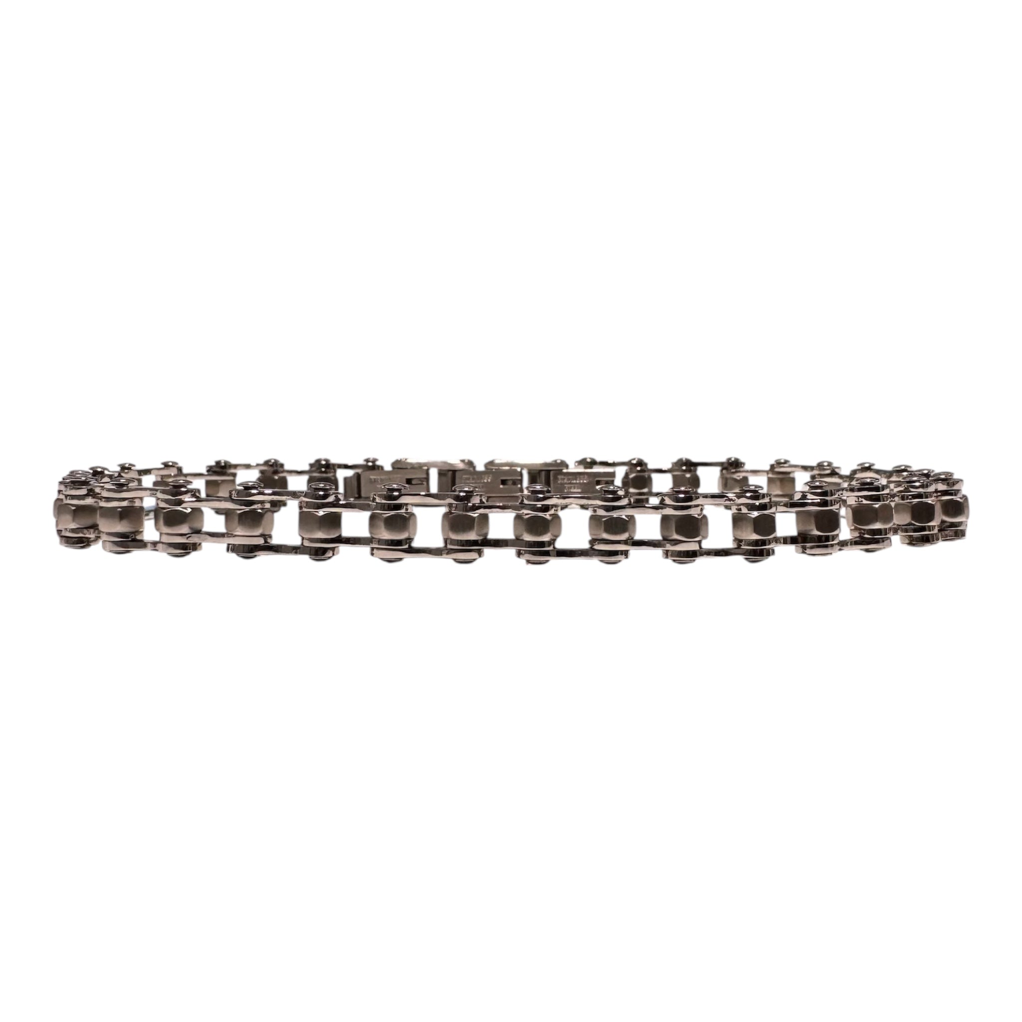 Bracciale da uomo in acciaio con maglia catena di bicicletta e maglie estraibili.