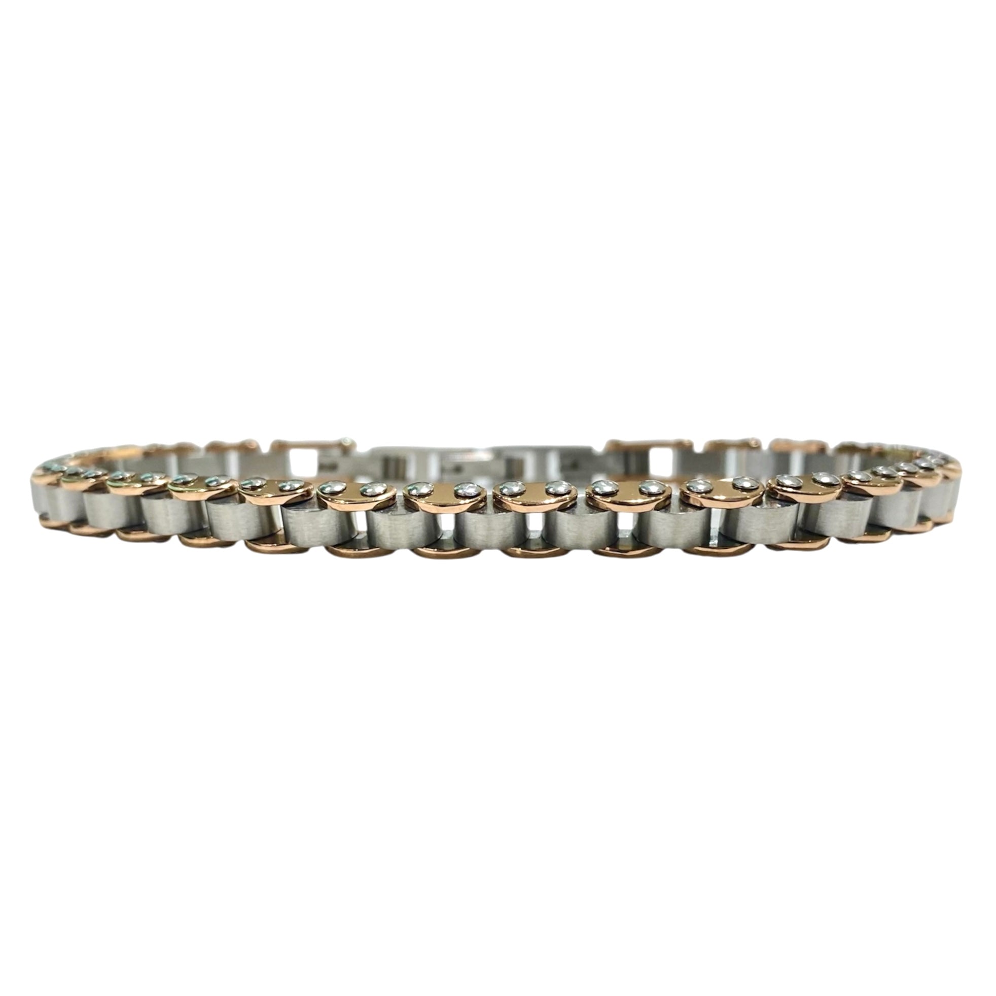 Bracciale da uomo in acciaio con laterale rosato.