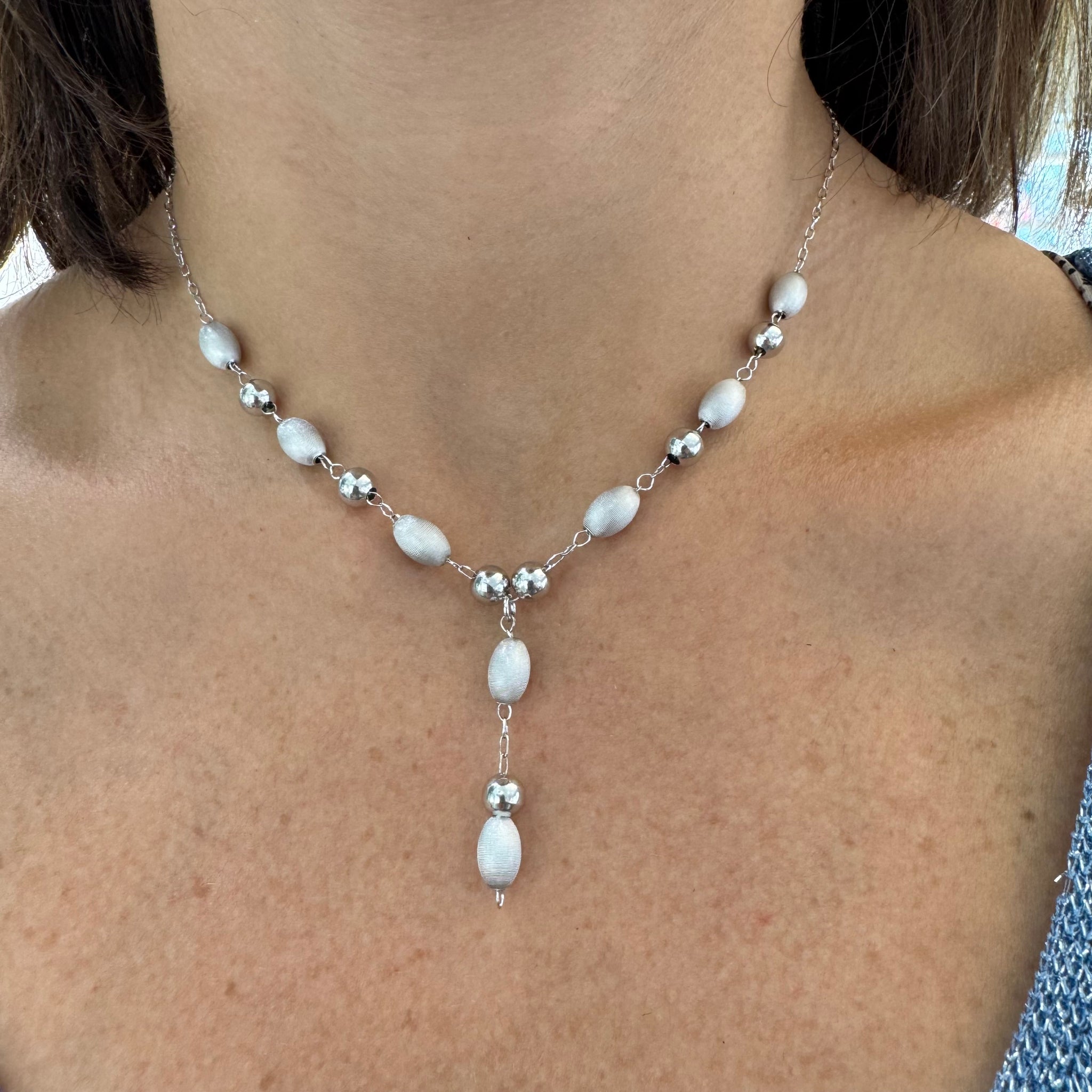 Collana in argento 925% maglia rolò con sfere lisce alternate a ovali satinati.