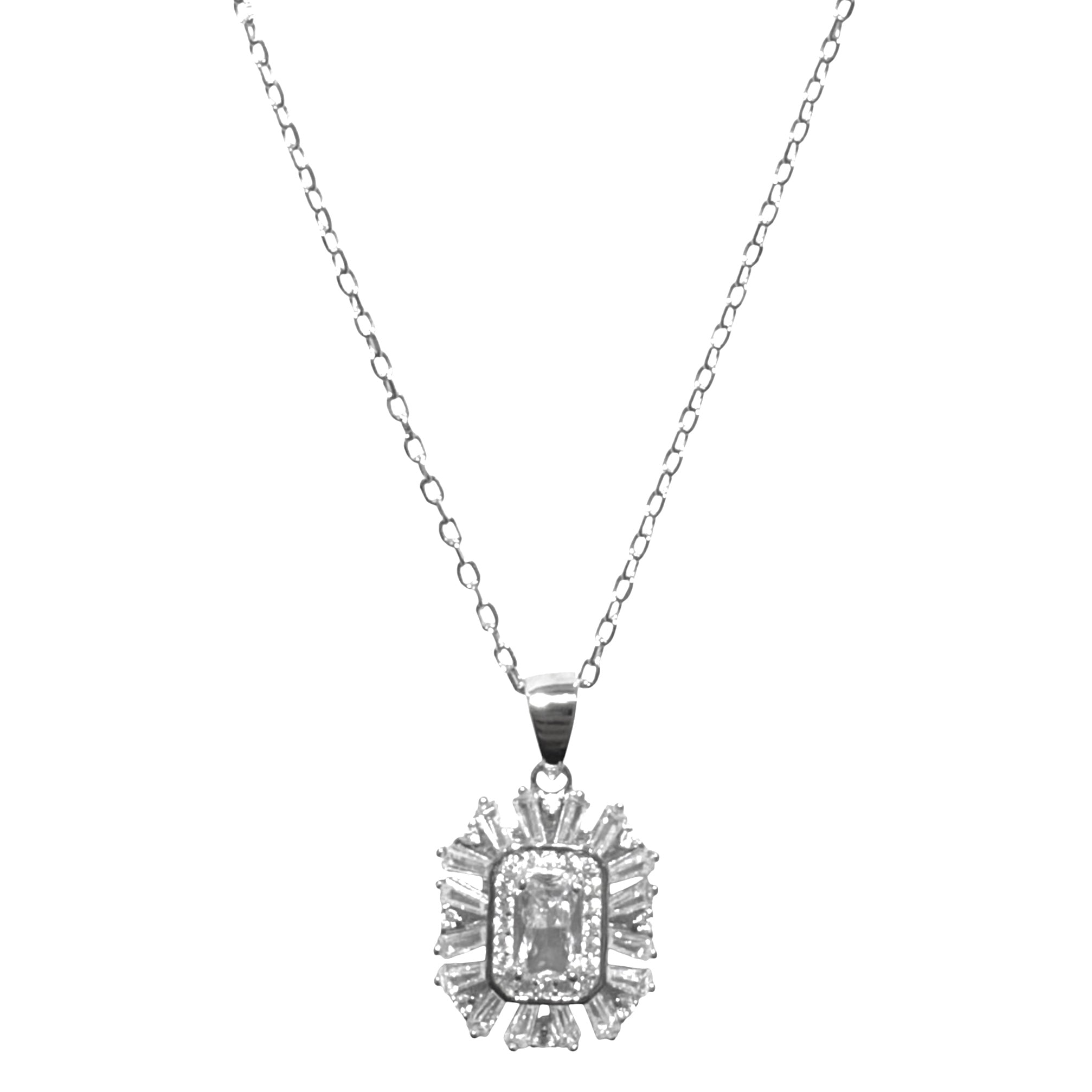 Collana in argento 925% con pendente con zirconi di vari tagli.