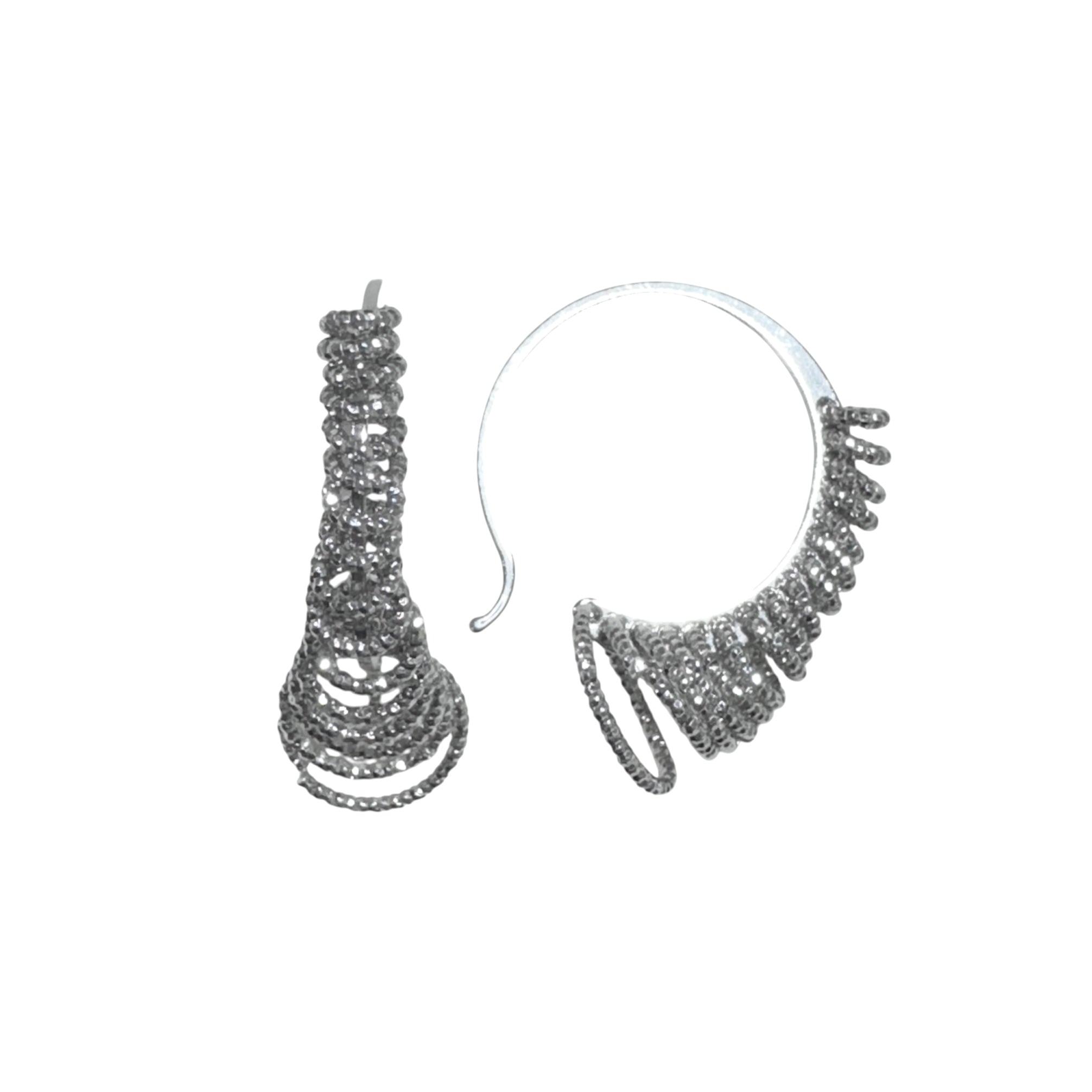 Orecchini in argento 925% sulla parte frontale cerchi scalari mobili diamantati con amo.