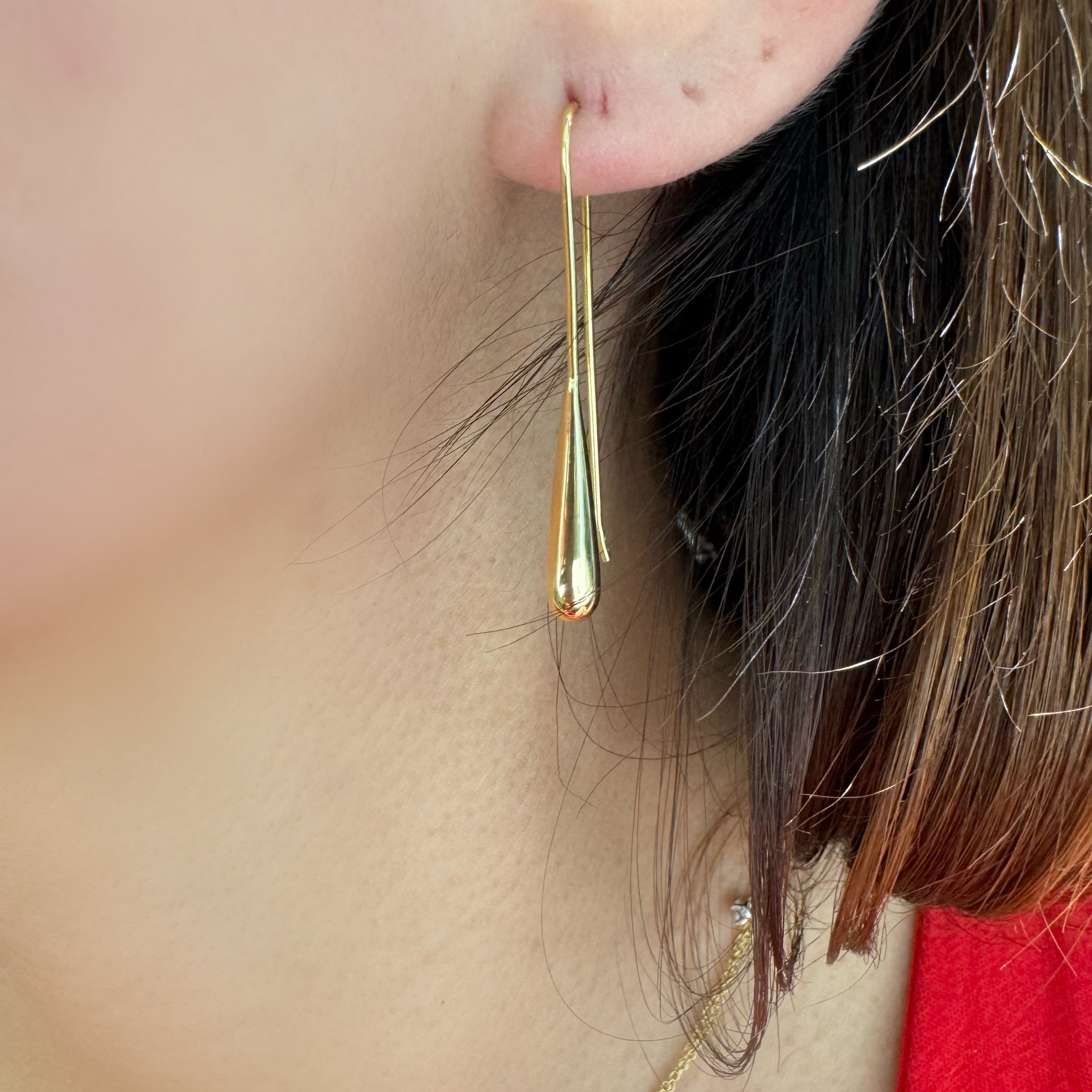 Orecchini in oro giallo 18KT/750% con canna rigide pendente con goccia finale