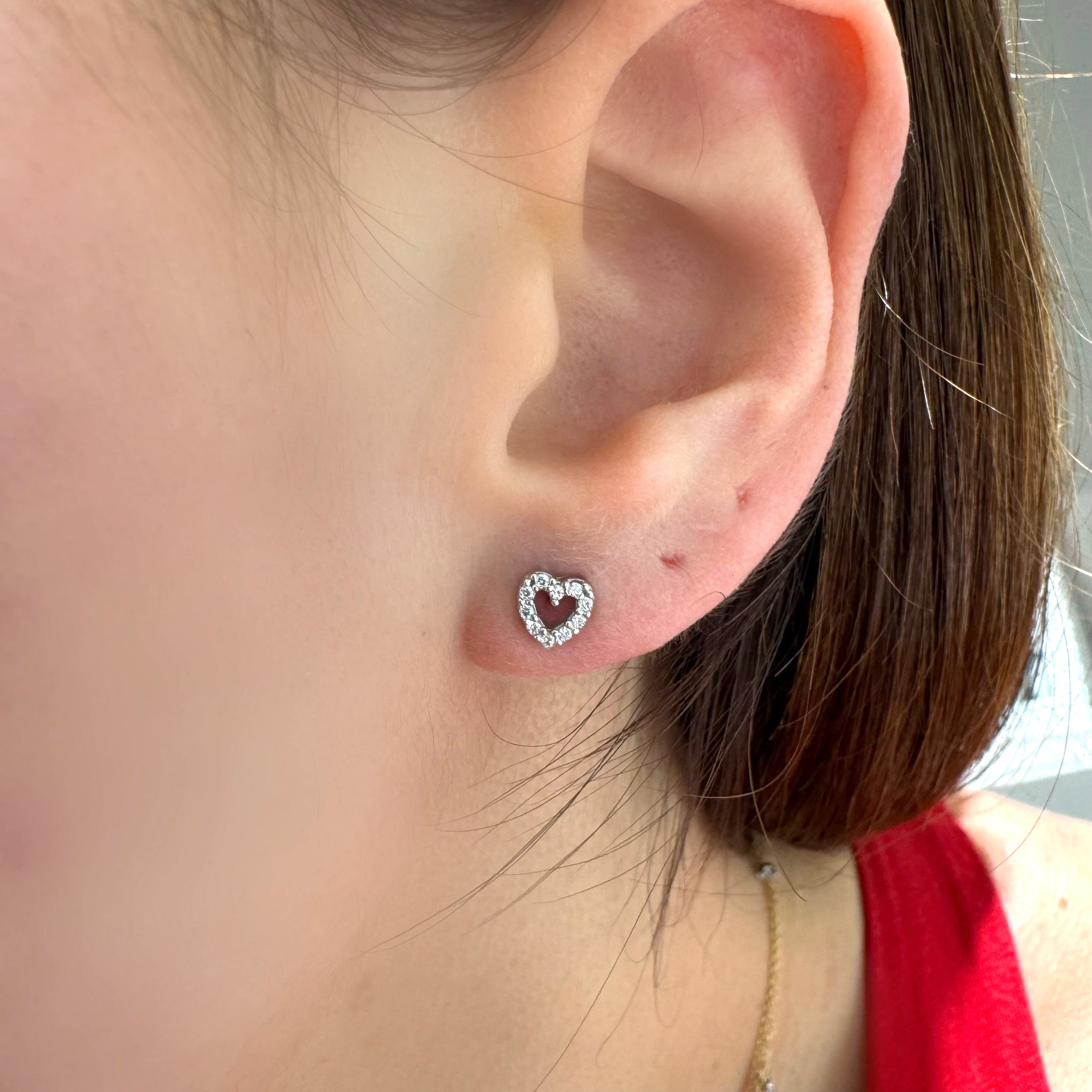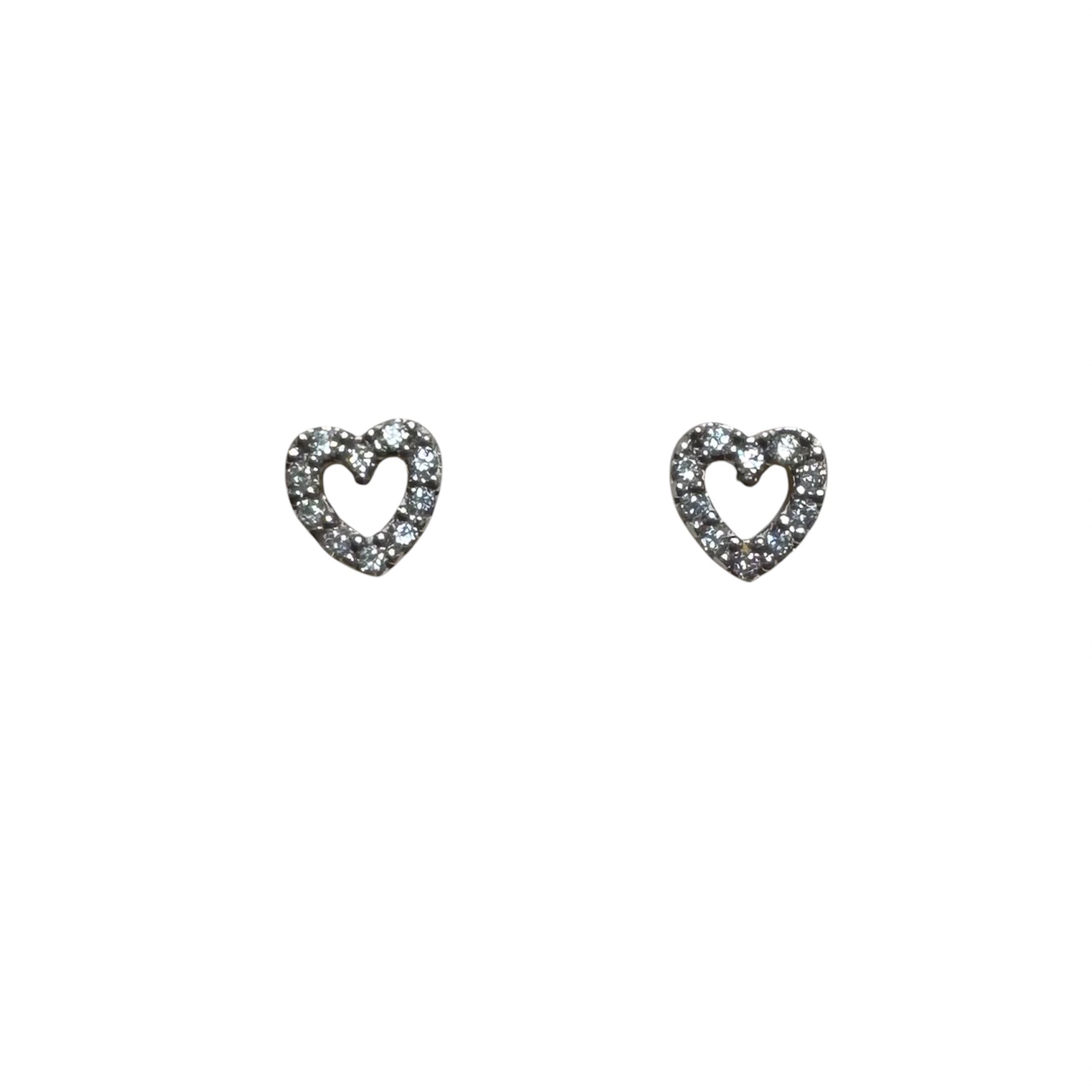 Orecchini in oro bianco 18KT/750% a lobo a forma di cuore con zirconi incastonati.