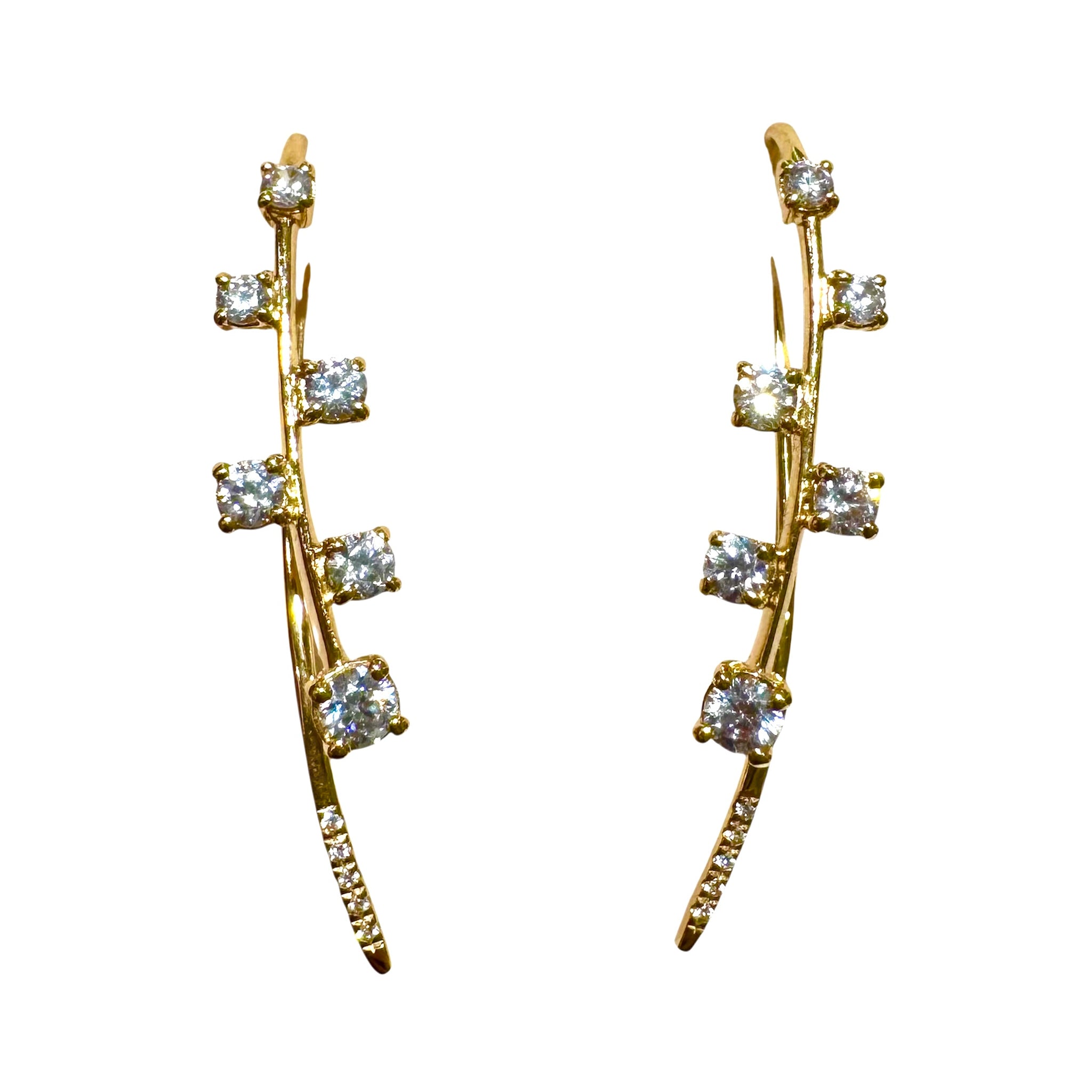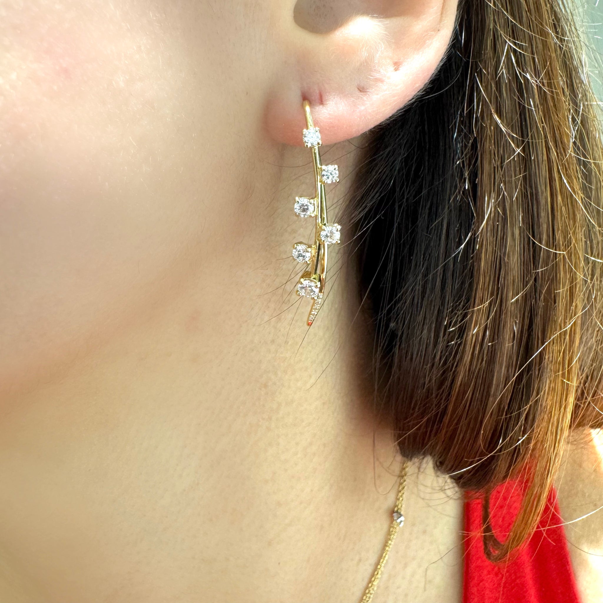 Orecchini in oro giallo 18KT/750% con canna rigida, piena e pendente con sei zirconi incastonati sulla parte frontale sulla parte frontale.