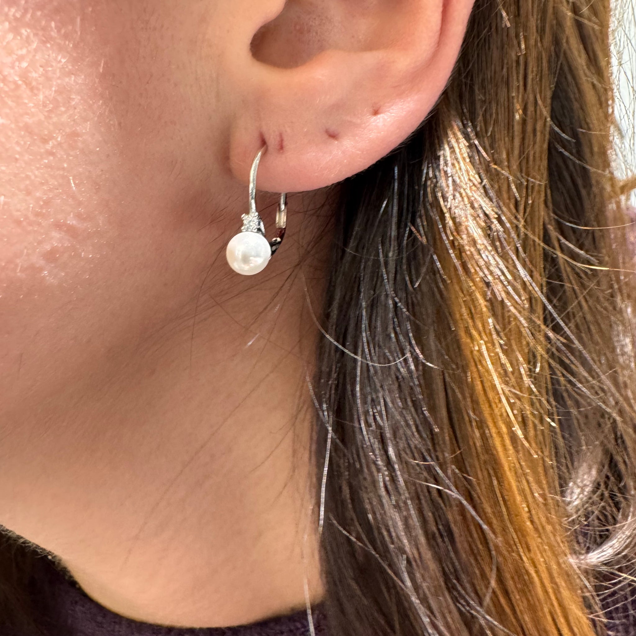 Orecchini in argento 925% a monachella con perla e zircone centrale sopra.