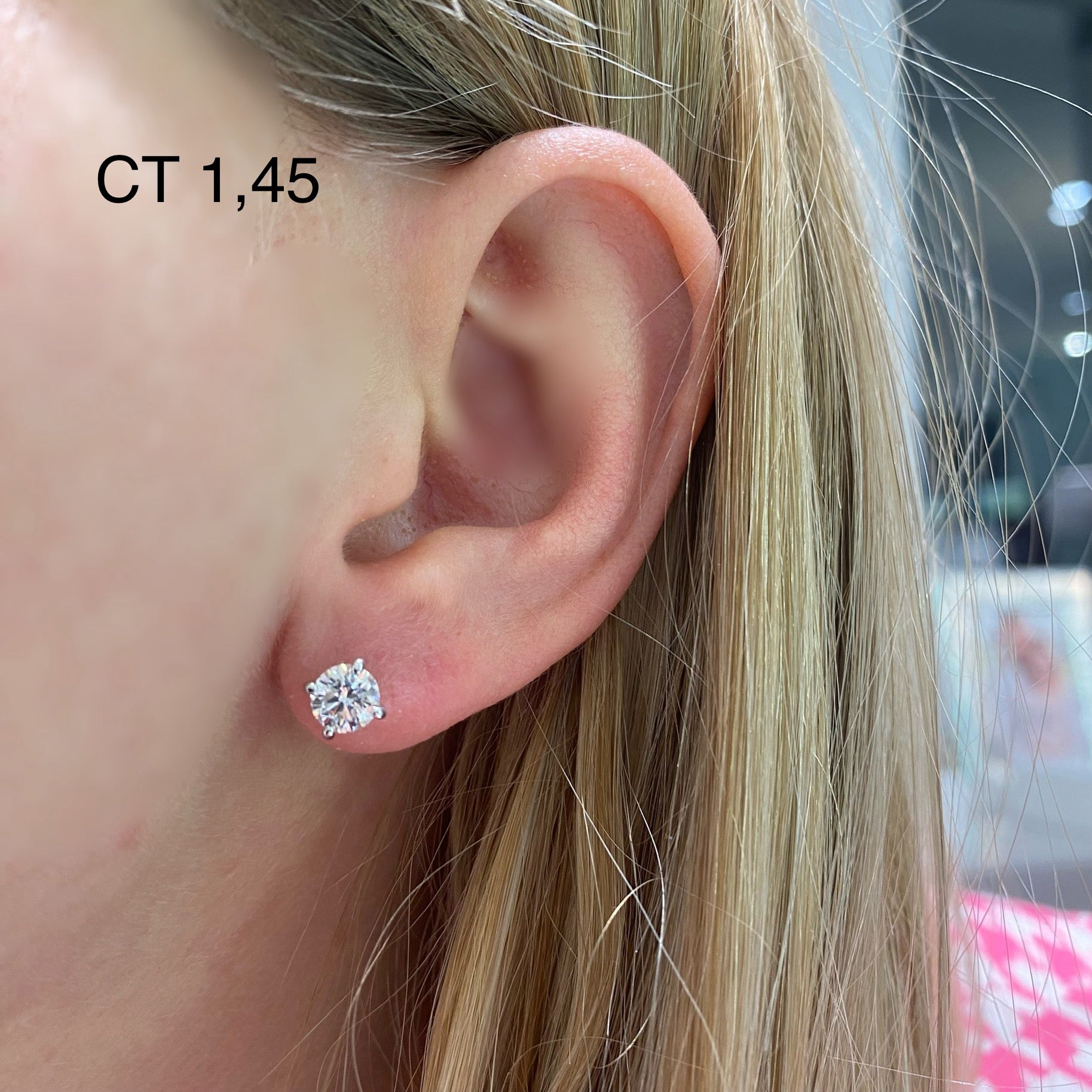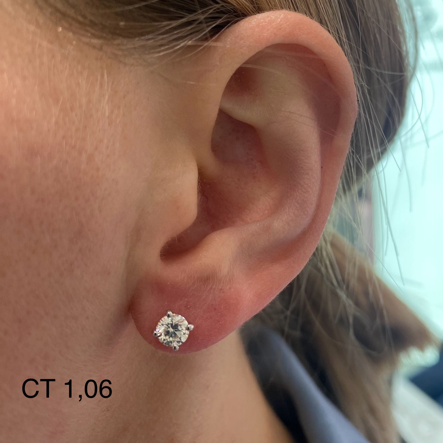 Orecchini in oro bianco 18KT/ 750% con montatura a filo e diamanti taglio brillante incastonati.