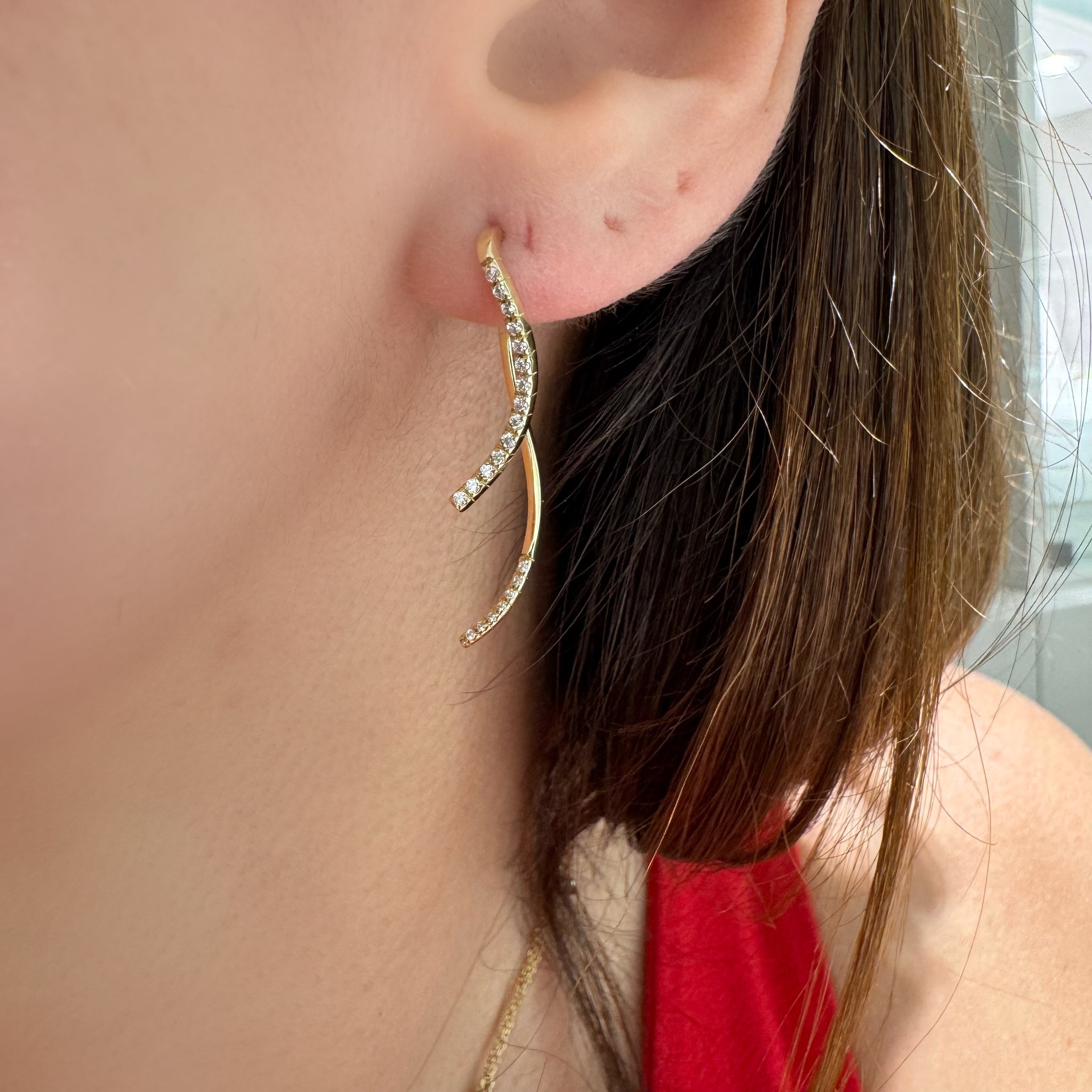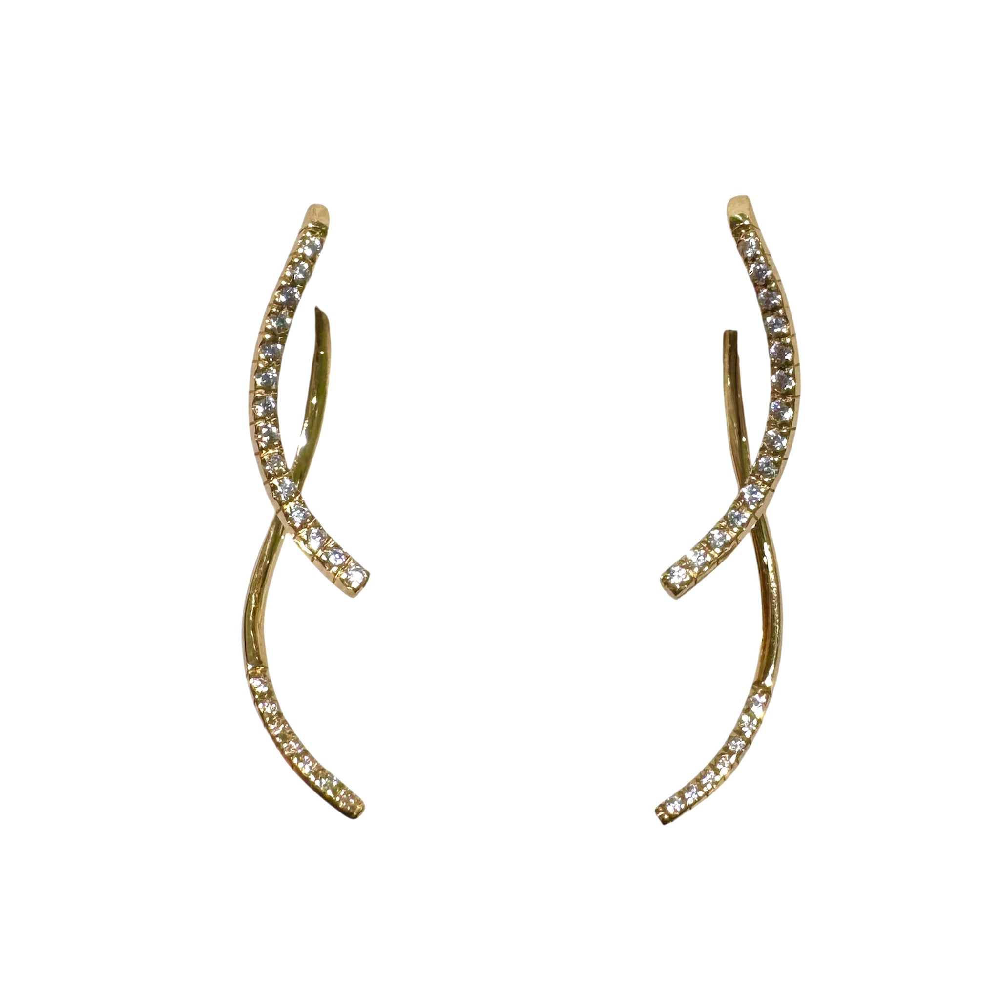 Orecchini in oro giallo 18KT/750% con canna rigida e piena con zirconi incastonati sui suoi due estremi