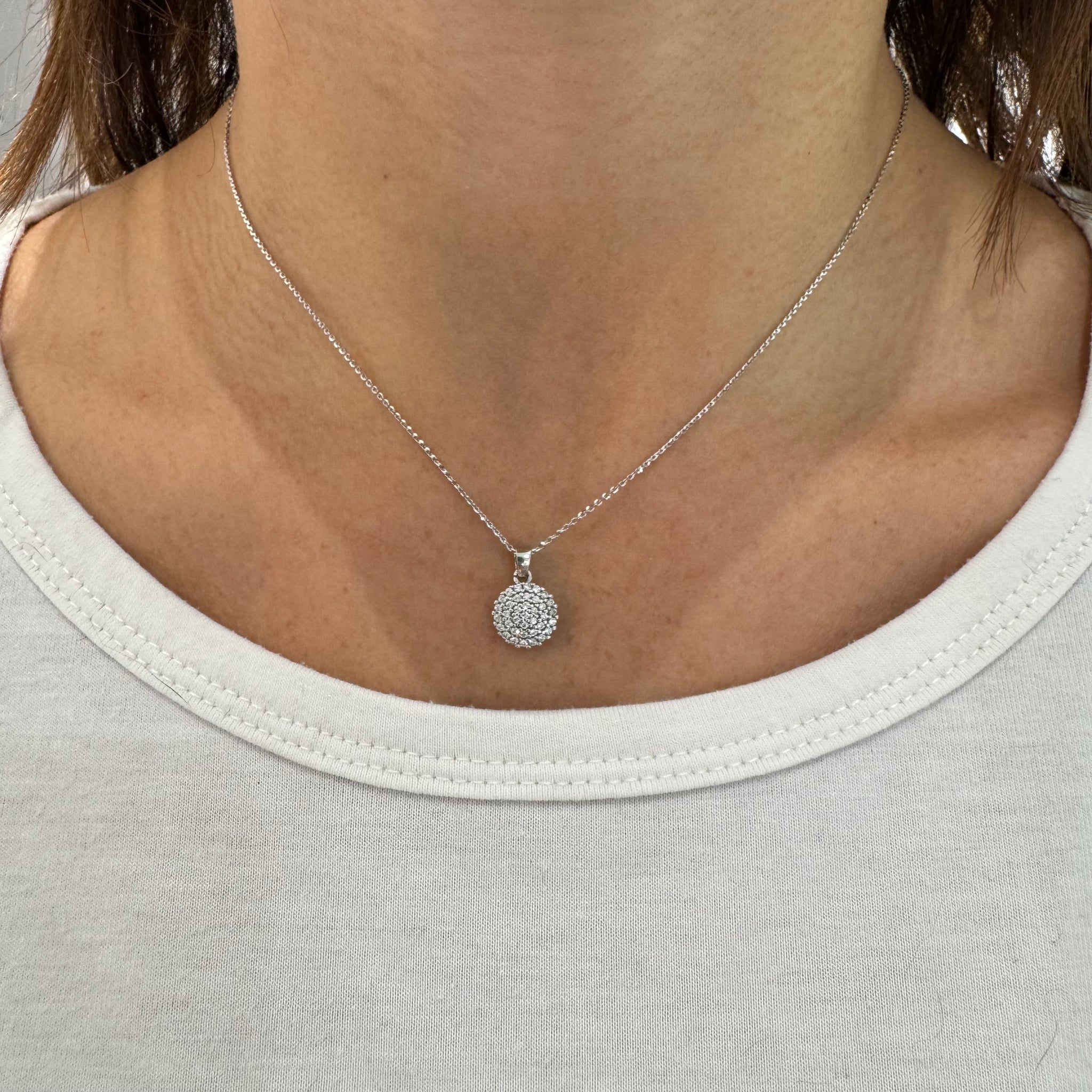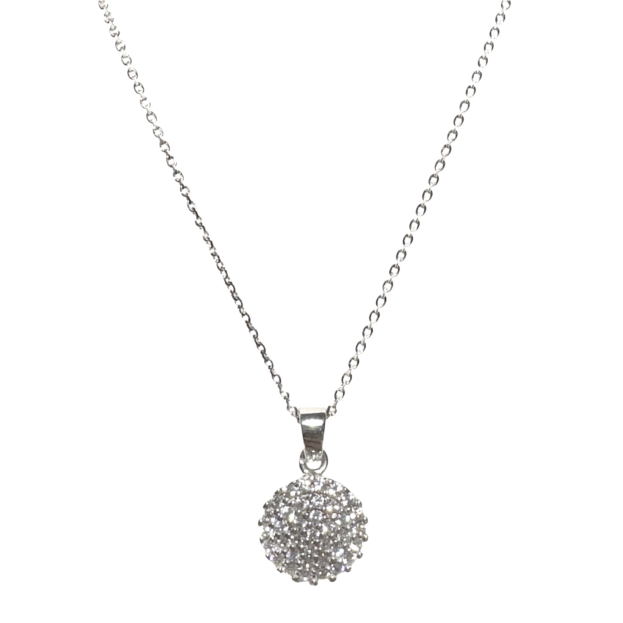 Catenina in oro bianco 18kt con ciondolo con zirconi incastonati.