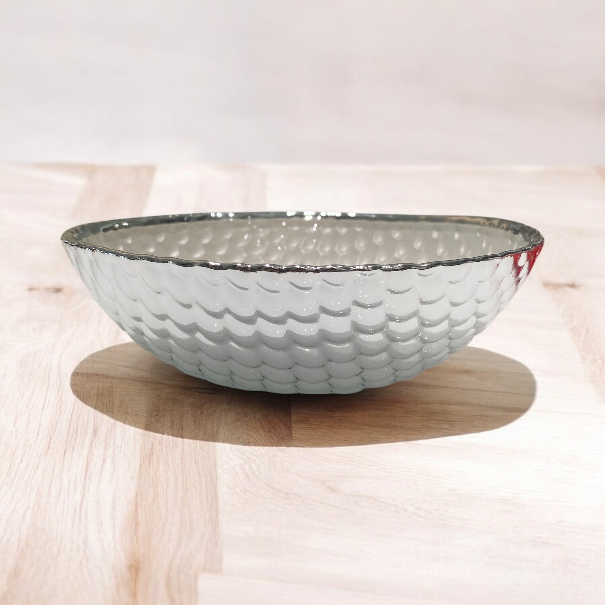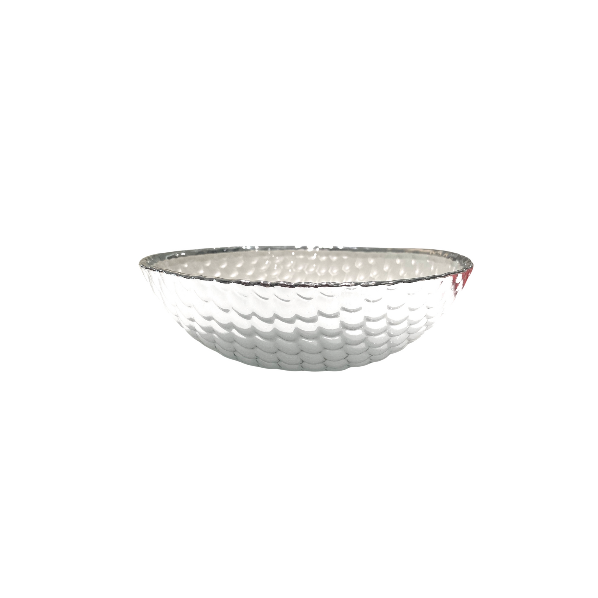 Centrotavola/svuota-tasche argentato con interno decorato color bianco perla