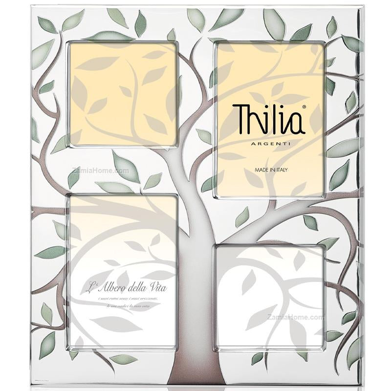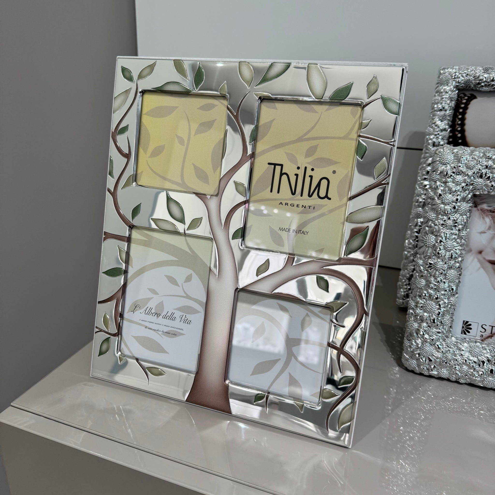 Cornice in argento lastra con albero della vita e lavorata su base di legno bianco.