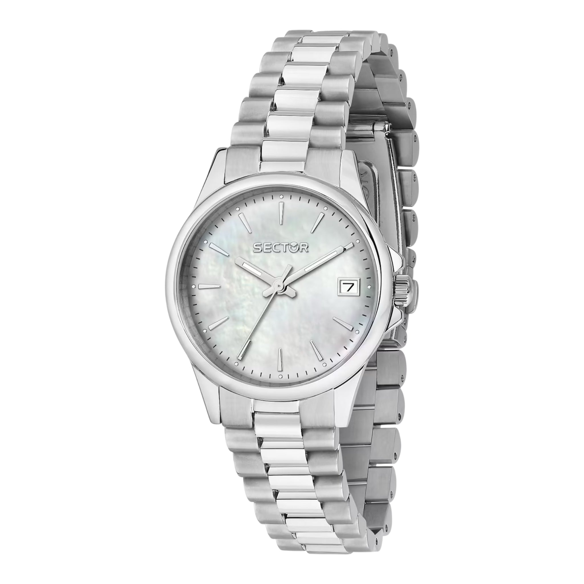 OROLOGIO SECTOR 230 - R3253161541 - Sector experience: No Limits, Genere : Donna, Materiale e finitura cassa: Acciaio, Misura cassa: 32mm, Spessore cassa: 10,20, Finitura cassa: Lucido, Colore cassa: Silver, Vetro: Vetro minerale, Materiale cinturino: metallo, Colore cinturino: Silver, Chiusura: Fibbia deployante con pulsanti, Movimento: Quarzo, Water resistant: 10 atm, Garanzia: Ufficiale 3 anni, Ufficiale 3 anni Sector, Confezione: Originale Sector
