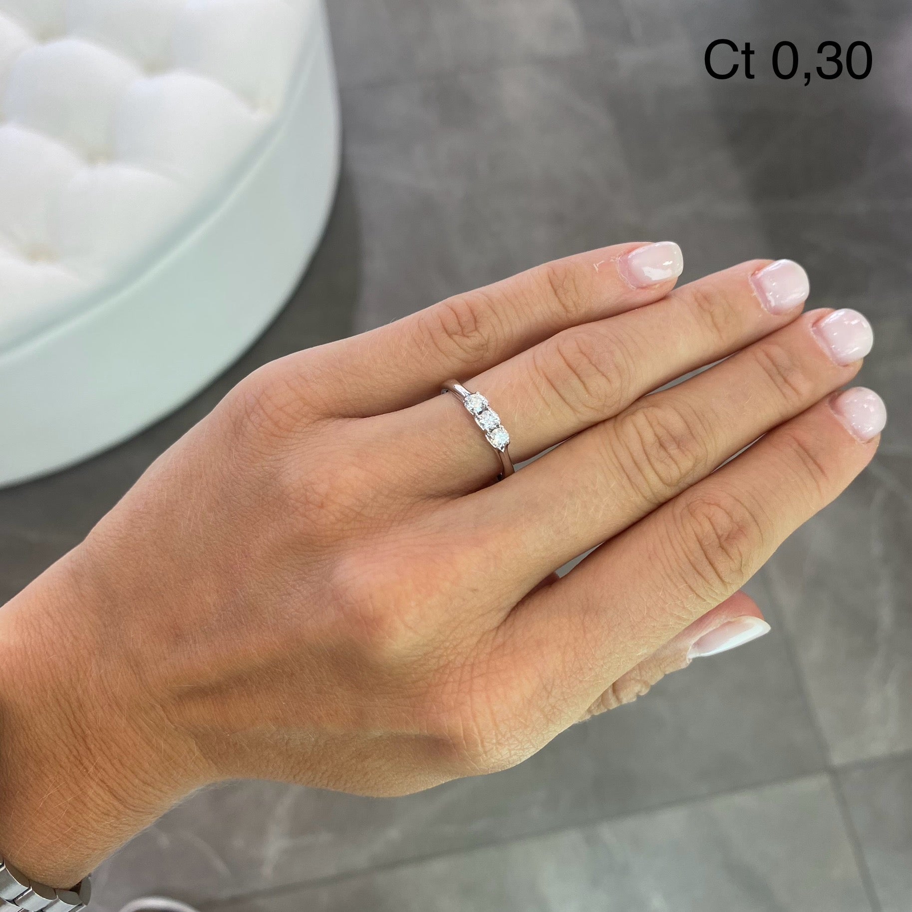 Anello in oro bianco18 KT/750% con tre diamanti incastonati taglio brillante.